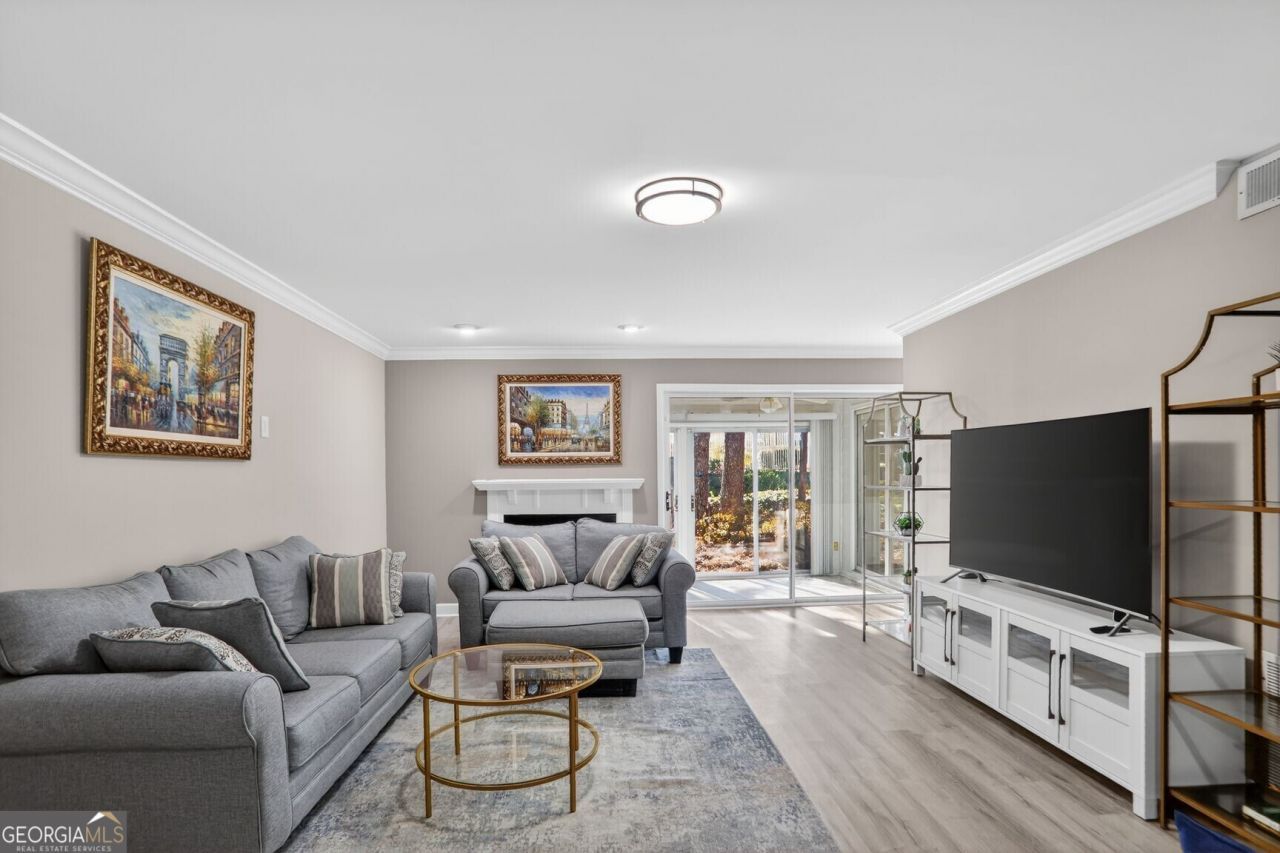 Location is everything with the move-in ready condo in the heart of Smyrna! Close to Smyrna Market Village, Truist Park, The Battery and 285/75 for easy commuting. Incredibly maintained main-level condo features two beds and two full baths. Enjoy new flooring, lighting and neutral paint throughout. The kitchen offers ample space for cooking and entertaining and eat-in kitchen provides a private view of the community lake! The original patio has been enclosed to create a sunroom - perfect for a home office, play room or sitting area. Quietly located within the community. Neighborhood amenities include: pool, tennis courts, playground, lake and fitness center. Nature lovers will enjoy the wooded walking trails and proximity to Silver Comet Trail. Condo is approved for FHA financing and has no HOA rent restrictions. Enjoy your new home today!