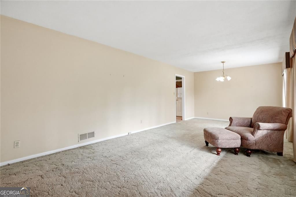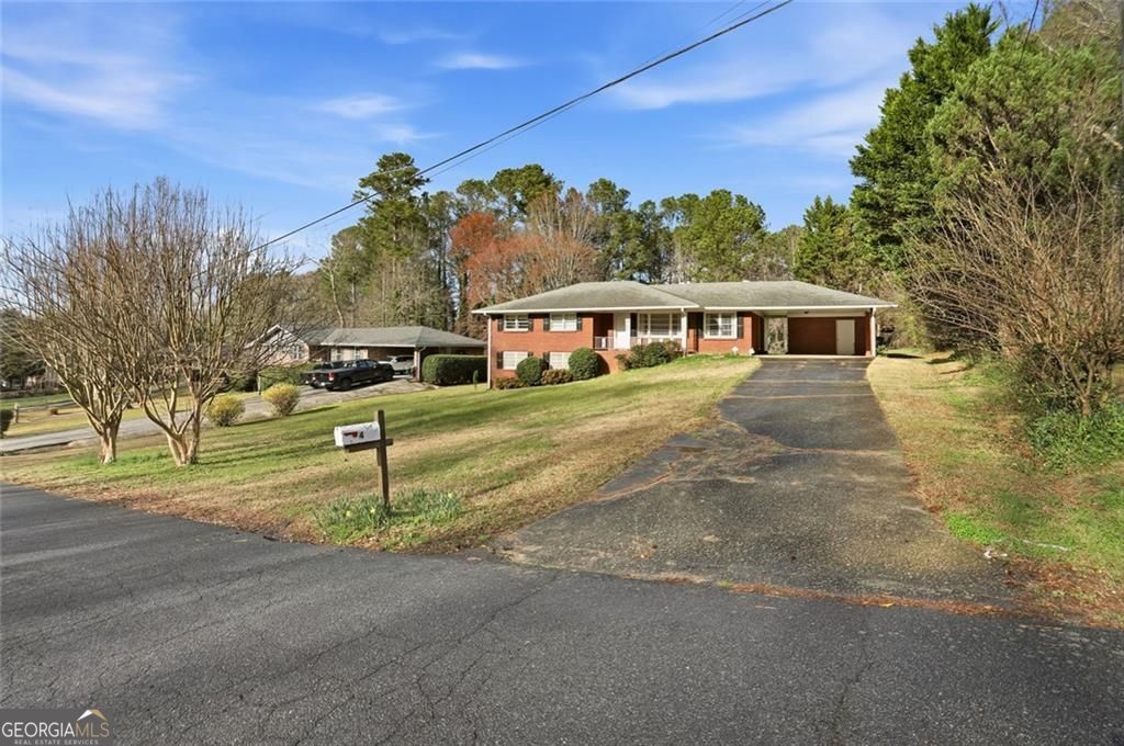 Ranch living with a full basement! Great location close to the East-West Connector and all the great activities of The Battery, Smyrna downtown and more. This house just needs some love and a new family for it to love! There are 3 bedrooms and 2 bathrooms on the main level and a potential 4th bedroom in the basement. There's a large den area next to the kitchen and a separate dining room / living room that could be incorporated into the den space for a huge open concepted living area. The backyard has plenty of area to garden or play. There is a storage room outside on the back of the garage area. The full basement has plenty of storage and even has a full size garage door built in!