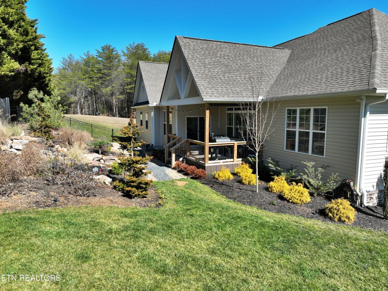 Welcome home to this gorgeous and well appointed home in prestigious Lennox Pointe. This home offers up to 4 bedrooms (3 bedroom septic) and 3-1/2 baths. It sits on almost an acre of land, and has a GORGEOUS natural waterfall, that can be viewed and heard from the living area and primary bedroom. Inside you will find open concept living, with plenty of light and tall ceilings that feels elegant and luxurious. Every bedroom has a bathroom attached, and each have their own walk in closet. The owner's suite is separate from the guest bedrooms, and offers gorgeous views of the waterfall, just outside its window. It has its own large luxurious bathroom, complete with soaking tub, tiles shower, and built in bidet toilet. The walk-in closet has plenty of room to move around and store plenty of clothing items. 2 other bedrooms are on the main floor, along with another full and half bath. Upstairs, you find additional living area that would be great for a theater or tv room, as well as extra storage space and easy access to the attic. Upstairs also offers another bedroom with walk in closet and another full bath. Outside of the home you will find a lovely covered porch that overlooks the serenity of a waterfall. The property is professionally landscaped in the front and back. A portion of the yard is surrounded with a high quality metal fence. Step outside of the fence and walk to the woods where you will find the perfect fire pit oasis. This home does back up to a small church so you have no immediate neighbors behind you.