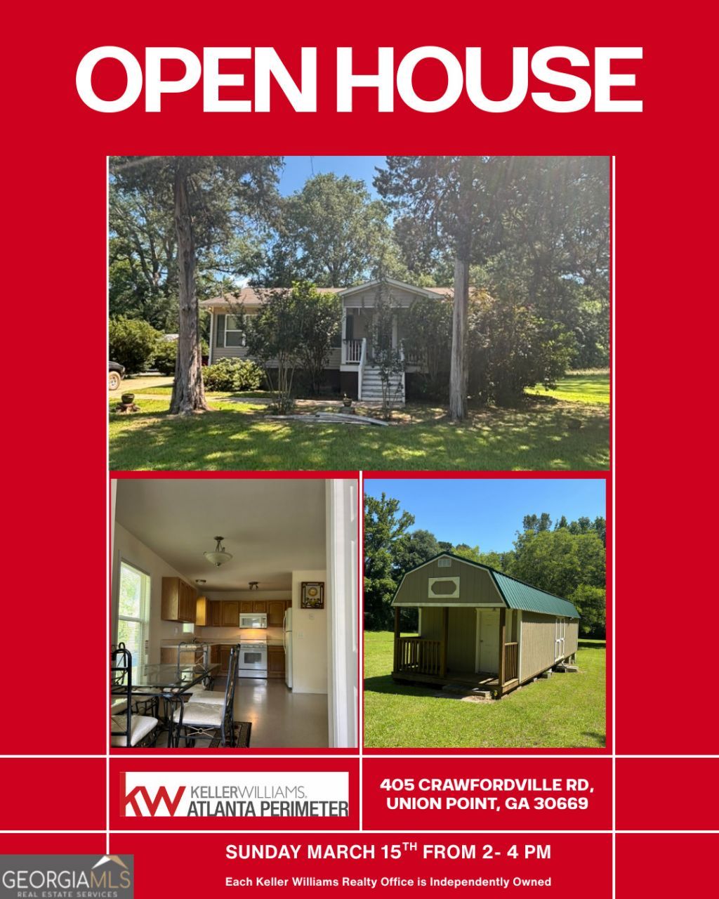 This single family home located at 405 Crawfordville Road, Union Point, GA 30669 is currently listed for sale with an asking price of $229,000. This property was built in 2012 and has 3 bedrooms and 2 full baths with 1120 sq. ft.Search Union Point real estate on www.clhomes.com today.