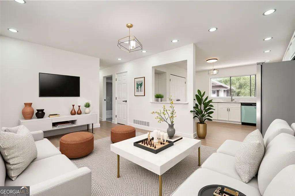 Move-in ready and fully updated, this bright ranch-style home offers effortless living with modern style. Sun-filled open living and dining areas flow into a designer kitchen featuring quartz countertops, stainless steel appliances, and a spacious eat-in island-ideal for everyday living and entertaining. The home includes three comfortable bedrooms and two beautifully renovated full baths, including a private primary suite with sleek, modern finishes. Wide-plank flooring, fresh interior paint, and upgraded lighting add warmth and functionality throughout. Step outside to a large, open backyard with a covered patio, offering endless possibilities for outdoor dining, gatherings, play, or future customization. A 3D Matterport virtual tour allows buyers to explore the home online and envision life in this turnkey space. Conveniently located near major highways, shopping, schools, and downtown Atlanta, this home blends comfort, space, and convenience.