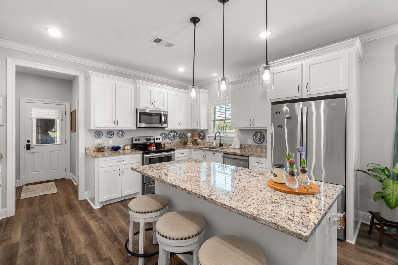 Welcome to this move-in ready Craftsman-style, one-story home built in 2022, tucked away on a quiet cul-de-sac in the desirable Legacy subdivision and located within the highly sought-after Oak Grove School District. With just over 1800 square feet, 3 bedrooms, and 2 baths, this home offers a wonderful blend of comfort, style, and peaceful surroundings.Inside, you'll find all solid-surface flooring throughout and an inviting living area featuring an electric fireplace that adds perfect ambiance to any night. The kitchen is both stylish and functional with granite countertops, stainless steel appliances, bar seating, and a dedicated dining area, making it ideal for everyday living and easy entertaining.The spacious primary suite offers a relaxing retreat with a walk-in closet and a versatile flex space that can easily serve as a sitting area, home office, or space for workout equipment. The custom tile shower sets this home apart, an. indicator of thoughtful design and quality. Two additional bedrooms and a second full bath provide comfortable accommodations for family or guests.Outdoor spaces are just as inviting. Enjoy quiet mornings on the welcoming front porch, a hallmark of the Craftsman style, or unwind on the back potting porch overlooking the level yard enclosed by a charming picket fence. The current owner has thoughtfully added beautiful flowering landscaping, creating a colorful and welcoming outdoor setting throughout the seasons. A two-car enclosed garage adds everyday convenience.Located toward the back of the neighborhood, the home sits directly across from a peaceful greenspace with a fountain and mature trees. Just a few steps from your front door, you can sit on a nearby bench, enjoy the view of the fountain, and listen to songbirds in the trees, creating a calm and relaxing setting that feels like your own little retreat. While the home feels tucked away, it's still just minutes from shopping, dining, and everyday conveniences in West Hattiesburg, with easy access to midtown and downtown via Richburg Road.Whether just starting out in your first home or downsizing to maximize minimal maintenance, this move-in ready Craftsman-style home combines comfort, charm, and a fantastic location. Schedule your showing today!$0 DOWN PAYMENT for borrowers who qualify for a USDA mortgage!