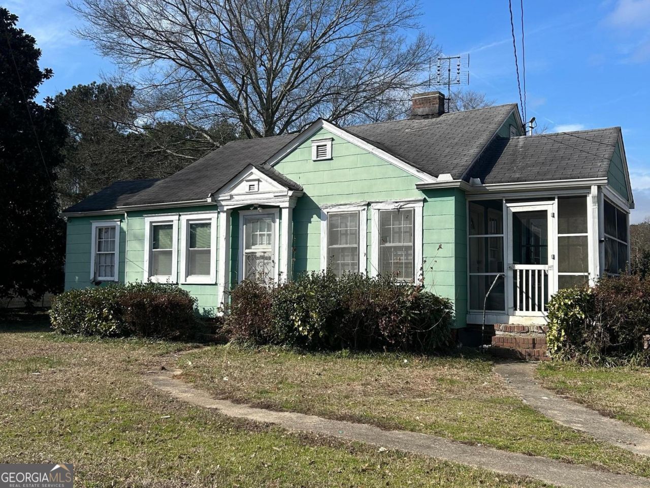 This charming cottage is perfect for investors looking to add to their rental portfolio and has commercial potential as well. 2 bedrooms and 1 remodeled bathroom with a tile shower. Double side (decorative only) fireplace in living room and bedroom. White kitchen cabinets and vintage farmhouse sink. Separate dining room. Laundry room. New deck on back. Large .7 acre lot is flat with 2 outbuildings. Side screen porch. Home is being sold in as is condition and does need work/TLC. Location is close to downtown Powder Springs, restaurants, etc. New subdivision with homes starting in the 400s being built 1 house down from this one makes it an excellent investment opportunity.