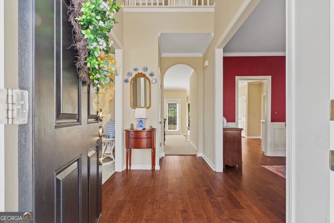 Welcome to this lovingly maintained and move-in ready home located in the highly sought-after North Forsyth school district within the charming Haddon Hall community. Offering 5 bedrooms and 3 bathrooms, this spacious home provides both comfort and flexibility for modern living. The additional rooms can easily serve as home offices or guest rooms, making the layout ideal for today's work-from-home lifestyle. The home has been freshly painted inside and out, giving it a clean, updated feel throughout. The second floor primary suite features a large walk-in closet and spacious bathroom with a relaxing soaking tub. The bedroom/expansive finished room over the garage (FROG) offers incredible versatility (perfect as a playroom, media room, or office) and also includes an additional bonus room ideal for extra walk-in closet storage or hobby space. The main-floor bedroom and full bath offer exceptional flexibility, making the home ideal for accommodating guests, multigenerational living, or a convenient private retreat. The kitchen has been thoughtfully updated with brand-new stainless steel appliances, freshly painted cabinetry, and elegant gold hardware and fixtures that add a stylish, modern touch. Throughout the home, updated light fixtures enhance each space, while dimming lights in the foyer and kitchen create a warm, inviting ambiance. The main level offers wonderful spaces for both everyday living and entertaining, including a dining room with box bay windows, a living room, and a spacious family room for gatherings. The main level features a combination of pristine hardwood floors and carpeting. The garage includes new lighting and added storage, offering excellent functionality and organization. Situated on a wooded lot, the home enjoys exceptional shade and privacy, creating a peaceful outdoor setting. The private backyard is perfect for hosting barbecues and family gatherings. The property's HVAC units have been meticulously maintained, working in harmony with the surrounding trees to help keep the home cool during hot Georgia summers. The roof has been inspected regularly and is in excellent condition. Haddon Hall offers a warm, welcoming neighborhood atmosphere, and the home's convenient location provides easy access to GA-400, making commuting to Atlanta and surrounding metro areas simple and convenient. This beautifully maintained home blends space, thoughtful updates, and a serene natural setting, a wonderful opportunity in one of North Forsyth's most desirable areas.