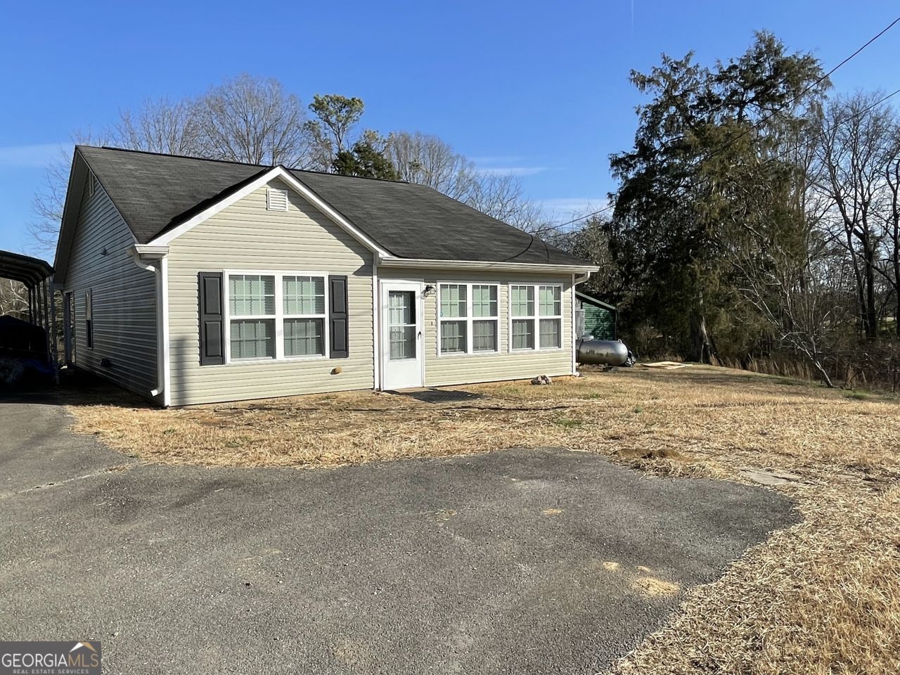 This exquisite ranch-style property is nestled at a slight remove from the main road, offering unparalleled seclusion and tranquility within the desirable Dogwood Valley. Spanning 5 acres, this estate boasts a serene ambiance and ultimate privacy. As you approach the property, a lengthy driveway guides you past a picturesque pond, teeming with fish, and adorned with apple and walnut trees. The enclosed front porch frames a breathtaking view of the pond, while the rear porch showcases the expansive landscape. Inside, the two-bedroom, two-bathroom residence features hardwood floors, carpeted bedrooms, and vinyl flooring in the bathrooms. Both bathrooms and the kitchen showcase granite countertops. A spacious laundry room, situated beyond the kitchen, overlooks the expansive backyard. Three storage sheds, located on the side of the home, will convey with the property. Whether you prefer relaxing on the back porch or unwinding by the pond, this property offers a unique and serene escape. Schedule a viewing today to make this haven yours. Home is presently undergoing a move out process, and the premises is in a state of disarray.