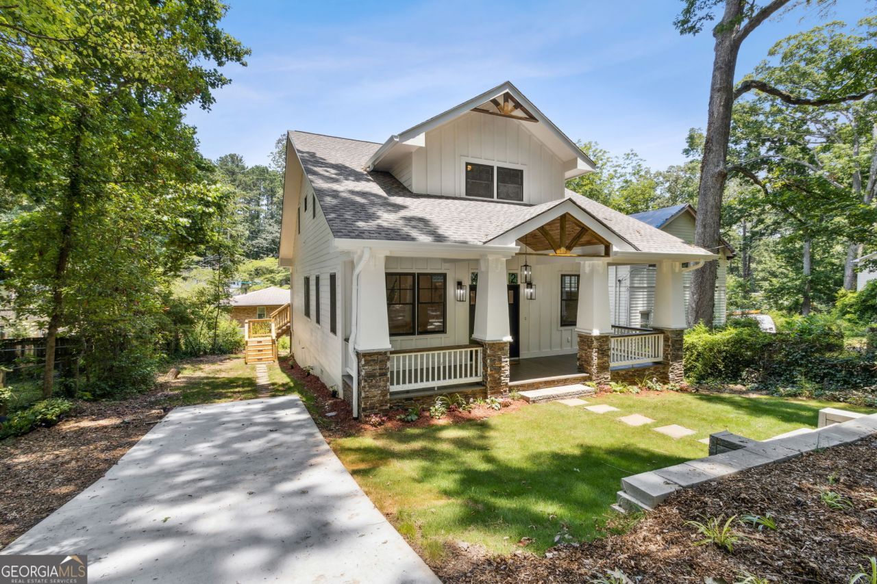 Stunning New Home in Pine Lake! Imagine owning a newly constructed, craftsman bungalow with a perfect blend of charming architecture and modern luxury. A custom build with the construction quality, trim & finishes typical of $1M+ luxury homes. This unique residence boasts high-end finishes, soaring ceilings, and an open-concept design which invites warmth and natural light. Thoughtful details are everywhere like recycling the wood from trees harvested from the lot and reused on the front railings and other areas within the home. This gem was designed and built with efficiency and sustainability in mind, exceeding construction standards to achieve the rigorous LEED certification. For example, the 2x6 wall construction, rarely seen today, incorporates spray foam insulation for maximum efficiency. On the main level, 10-foot ceilings, elegant crown molding, warm hardwood floors, and rays of sunlight beam across the open floor plan. The glamorous, airy kitchen-with its central island and new KitchenAid appliances-perfect for gatherings with your favorite people. The main level also includes a bedroom, a bathroom, and a flex room/office. The second floor features three large bedrooms, two full bathrooms, and a dedicated laundry room, offering comfort and convenience. The primary suite is a retreat of its own, with expansive windows, double closets, and a spa-like en-suite bathroom featuring a double vanity, soaking tub, and separate shower-an oasis that feels like a luxury vacation. Nestled in Pine Lake, beneath the shade of whispering trees and surrounded by blooming flowers that attract songbirds, this one-of-a-kind craftsman bungalow feels like a dream. Sip tea on the front porch, stargaze from the back deck, or take a short stroll to discover winding trails, a shimmering lake with a sandy beach, and a playground. The vibrant, arts-embracing community, with its welcoming clubhouse and unique spirit, marches to the beat of its own drum.