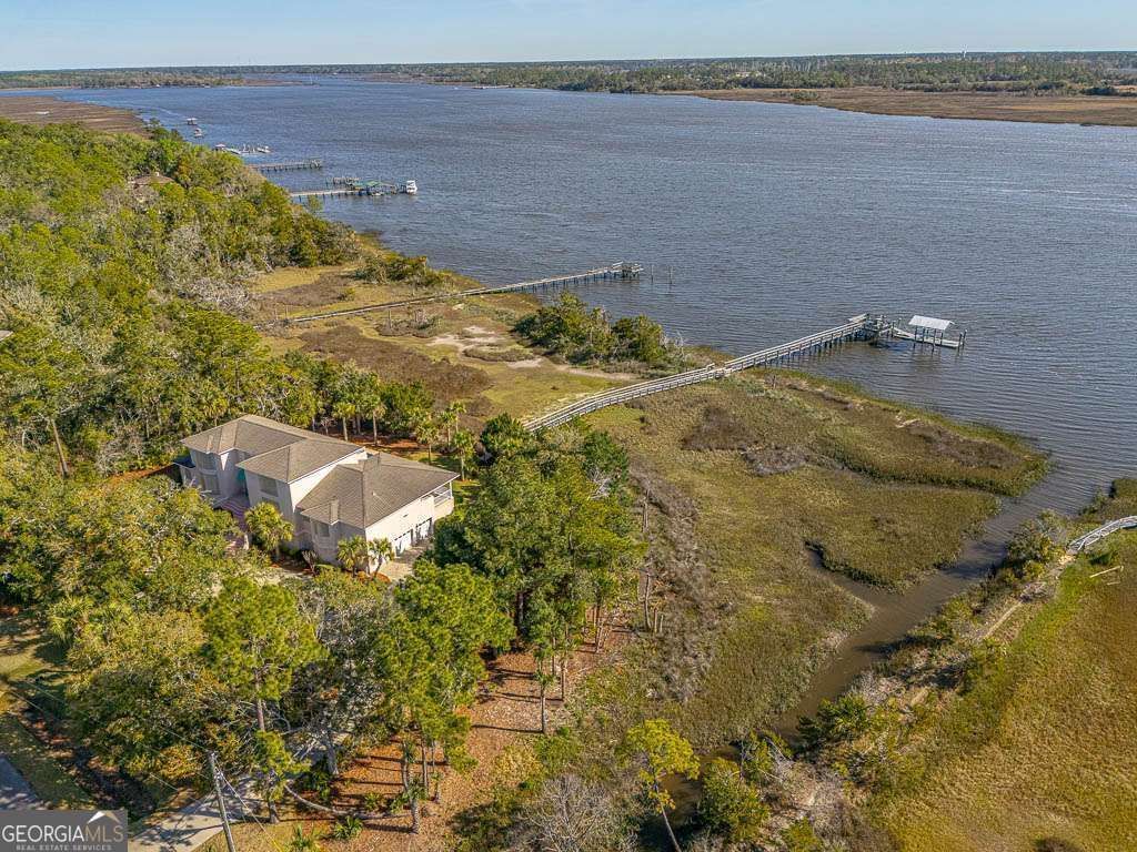 Set on a rare and breathtaking 2.61-acre deep water lot, this exceptional estate offers the ultimate blend of luxury, privacy, and coastal lifestyle with a private dock and boat lift. The striking stucco exterior and grand split staircase welcome you into an impressive interior featuring a spacious living room adorned with interior columns and tile flooring throughout the main living areas. The well-appointed kitchen is designed for both everyday living and entertaining, complete with a dishwasher, microwave, wall oven, separate cooktop, breakfast bar, and pantry, seamlessly connecting to the dining space. A guest suite on the main level includes a walk-in closet and private ensuite with dual vanities and a tiled shower, along with direct access to the pool area. The primary suite is a true retreat, featuring a wet bar, a separate sitting area ideal for an office or additional dressing space, and a luxurious oversized ensuite with dual vanities, a large walk-in tiled shower, a separate jacuzzi tub, and an expansive walk-in closet. The main floor also includes a convenient half bath and a laundry room with sink and built-in storage. Accessible by elevator, the third floor boasts an entertainer's dream billiard room with wet bar, as well as a second guest suite complete with a private balcony overlooking the marsh, walk-in closet, and ensuite bath with dual vanities and tiled shower. Taking the elevator back to the ground level offers a three-car garage and an expansive storage area to accommodate all your needs. Tons of space down stairs to be finished out with more storage, bedrooms, game room, exercise room and so much more. Outdoor living is unparalleled, featuring a fenced backyard, elevated saltwater pool and hot tub, and both covered and open porch spaces perfect for enjoying the serene surroundings. Completing this extraordinary property is a 10x40 floating dock equipped with water and power, along with a fully functional boat lift-making this a true waterfront paradise.