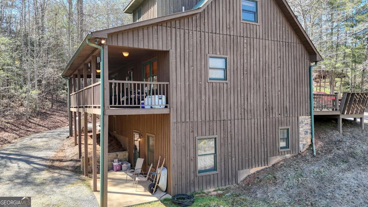 Escape to the mountains with this charming FULLY FURNISHED 4-bedroom, 3-bath cabin-style home nestled on 0.76 +/- acres in the desirable Swallows Creek area of Hiawassee, GA. Surrounded by peaceful mountain scenery and located in a quiet community with all paved roads, this property offers the perfect blend of privacy, comfort, and convenience. Inside, you'll find unique rustic wood accents throughout, creating a warm and inviting cabin feel. The home features two full kitchens, making the terrace level ideal for a mother-in-law suite, guest quarters, or income-producing apartment.The main level offers easy living with a bedroom, full bath, and laundry. Upstairs, a spacious loft bedroom with a private bath provides a cozy retreat with plenty of natural light. The terrace level includes two additional bedrooms, another full bath, a living area, and the second kitchen, offering excellent flexibility for extended family or rental opportunities.Enjoy the outdoors from the lovely front deck and porch, or relax on the covered back porch overlooking the landscaped yard. The property also features a stone retaining wall, circular driveway, and well-maintained landscaping, adding to its curb appeal.Conveniently located less than five miles from downtown Hiawassee, Lake Chatuge, and nearby hiking trails, this home gives you easy access to everything the North Georgia mountains have to offer. Additional updates include a new HVAC system installed in 2024 and the septic tank serviced and pumped in 2023 Whether you're looking for a full-time residence, mountain getaway, or investment opportunity, this beautiful cabin is ready to welcome you home.