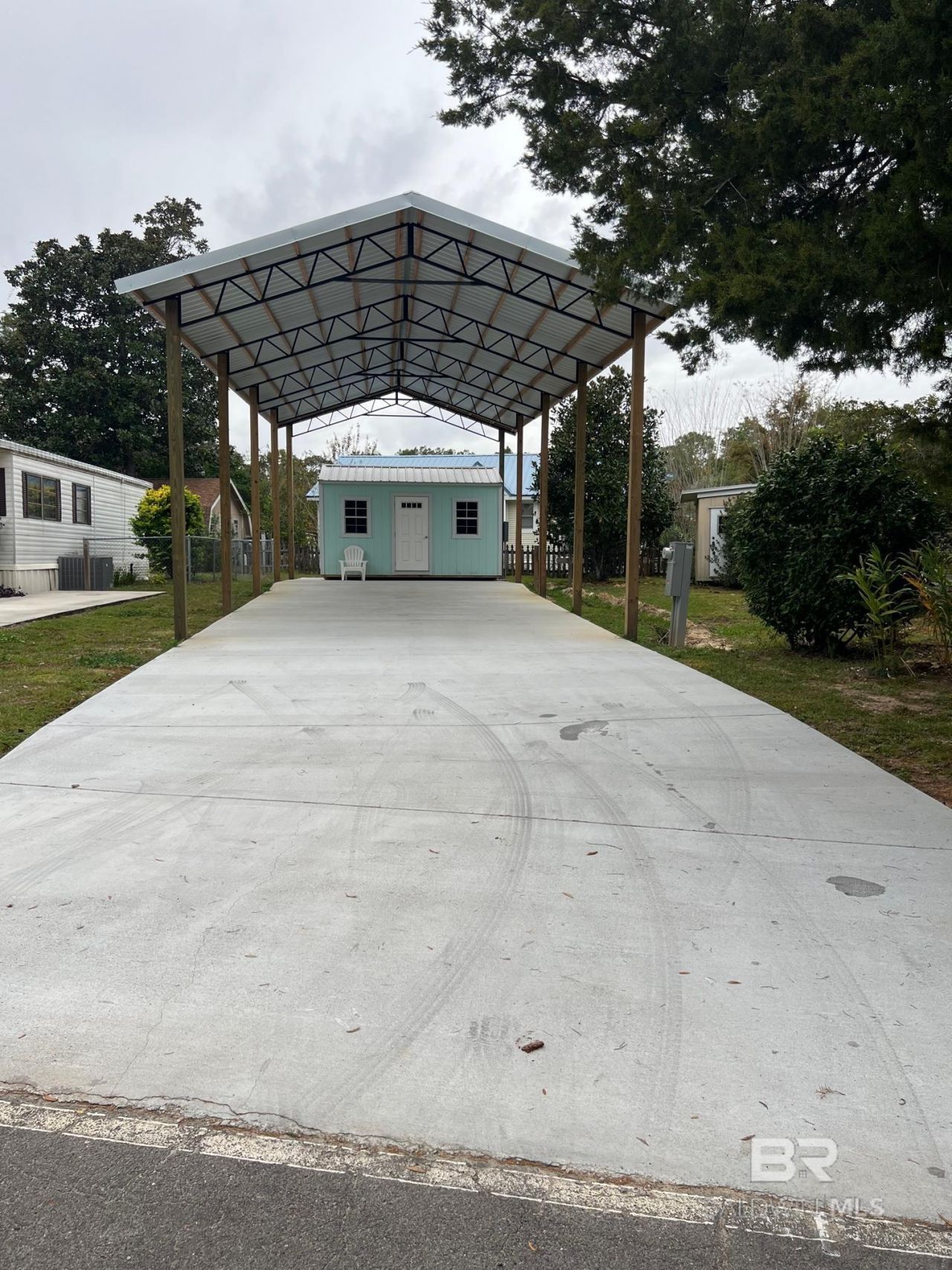 Coastal RV Lot with space for boat parking. This lot is fully functional for Class A, Class C, 5th Wheel, 28 feet or longer. Includes: New Concrete Pad, RV/Boat Cover 20'x 46', Storage building (10'x16') for added living or storage space with electric hookups for washer and dryer and mini split, exterior lighting and electric for a grill. RV hook ups for 50 amp Electric to RV and 50 amp to building 50 amp, Parking space for car and boat, and includes water and sewer hook ups. This property is in the highly desired, safe, friendly, beach neighborhood of Spanish Cove on the shores of Perdido Bay, just 5 minutes from the Lillian boat launch and only 15 minutes from the sugar white beaches of the Gulf of Mexico. There is something for everyone in this coastal golf cart community. Owners enjoy membership with a lifestyle full of amenities and low POA Dues of only $75/Mo including trash pick-up, 24 hours security and key FOB entry into facilities, two clubhouses, a year-round junior Olympic sized swimming pool that is heated and covered in the winter months with aquatic classes. The many offered activities include: pickleball and tennis courts, basketball court, fitness facility, playground, shuffleboard, and nature hiking trails. You can join the community-organized activities like Bingo, card games, live bands, book clubs, garden club, and group travel opportunities. If you like to relax, you can spend the day at the Spanish Cove beach, fish from the 500-ft pier, or watch the sunset while taking a stroll around this lovely golf cart community. Spanish Cove and Lillian are convenient to the Pensacola NAS facilities, Gulf Shores, Orange Beach, and Foley and close to exquisite shopping and fine restaurants, and the OWA amusement park. Come see your new home or weekend getaway. This is an equitable interest listing where seller is selling only an option contract or assigning an interest in a contract, such as a purchase and sale agreement or a contract for deed. In this si
