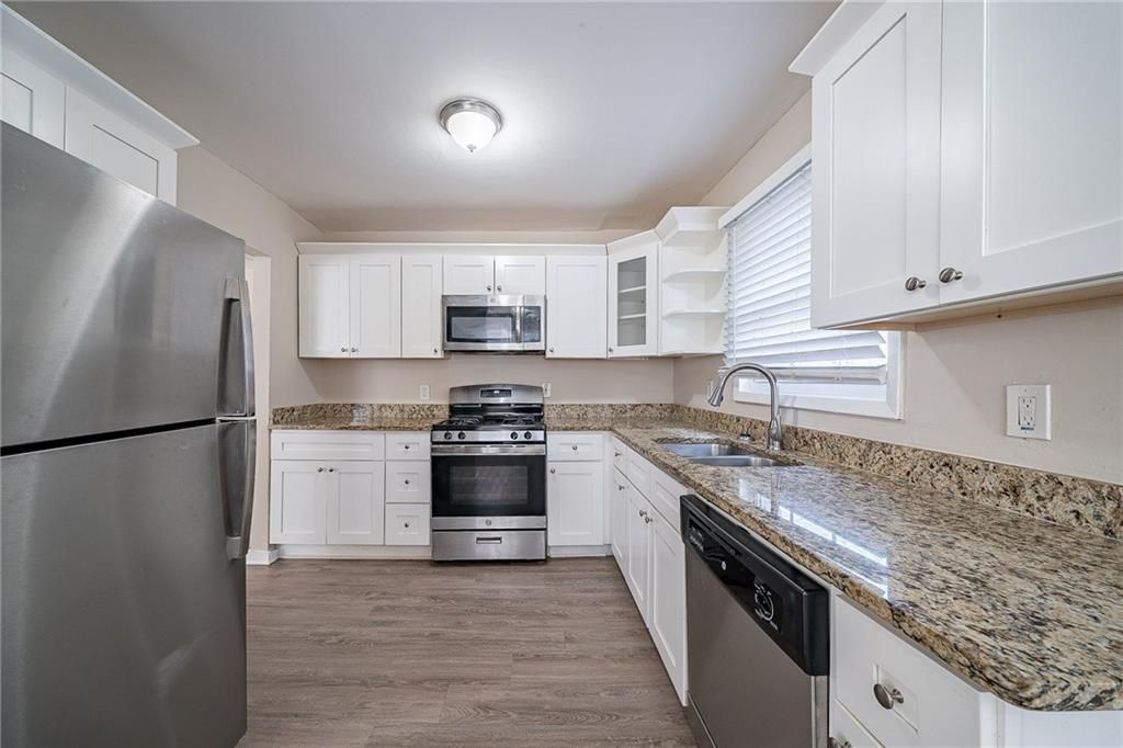 Welcome to this beautiful 2-level, 4-bedroom, 2-bathroom home, offering modern features and a comfortable living space. The main level features a bright and spacious living area, complemented by a stunning white kitchen with sleek stainless steel appliances, stone countertops, and ample cabinet space. The open concept layout makes entertaining a breeze, while large windows allow natural light to fill the home.The home includes generously sized bedrooms and two well-appointed bathrooms, ensuring comfort and convenience for all family members. The lower level boasts a laundry room, adding to the functionality of this home.Step outside to the private, fenced backyard with a cozy back patio ? perfect for outdoor gatherings, relaxation, or gardening. A driveway provides space for one car, while vinyl flooring throughout adds both style and ease of maintenance.Don't miss the opportunity to make this your new home! Schedule your showing today to see all this home has to offer!