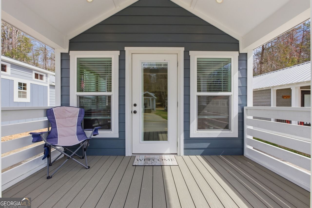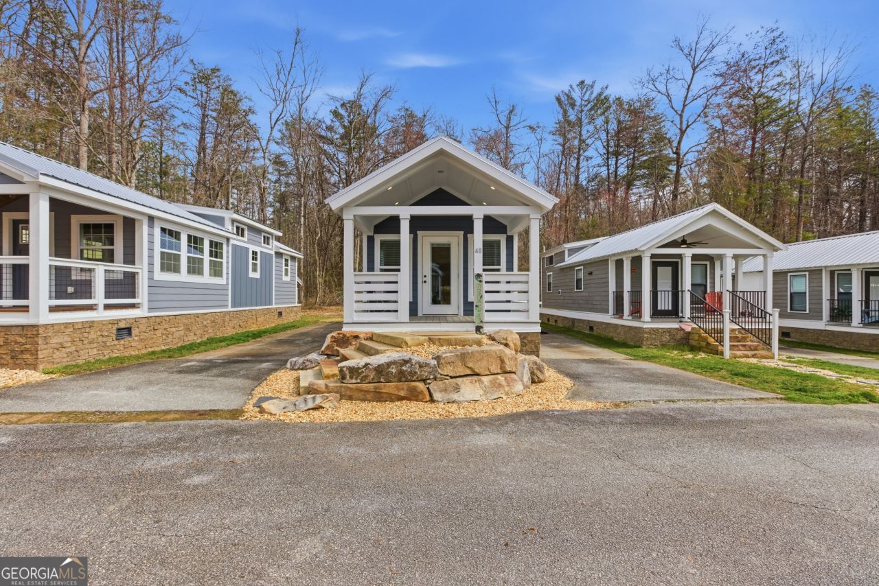 Simple living meets modern comfort in this Wayah model tiny home. This cozy 1 bedroom, 1 bath home includes flexible office space and a welcoming front porch perfect for morning coffee or evening relaxation. The bedroom has two closets for maximum storage. Built with a vapor barrier for durability and efficiency, this home offers low maintenance living in a peaceful community setting. Schedule a showing today and discover the possibilities of tiny living! Sugar Mill Creek at Lake Burton is a private, gated, resort-style community with 51 park model tiny home sites over the 12-acre property. The community is sure to impress, offering a Dog Park, a Clubhouse on the Property, Outside Fire Pits, Community-Sponsored Events, Streams Throughout the Property, Private Driveways and Parking, & and a Nearby Marina for Lake Access. Fiber Internet was recently installed throughout the community. It is conveniently located near Lake Burton, Laprades Marina, Moccasin Creek State Park, and several local restaurants, and is perfectly situated between Clayton, Helen, and Clarkesville, Georgia. Agent must be present at all showings. Call for gate code.