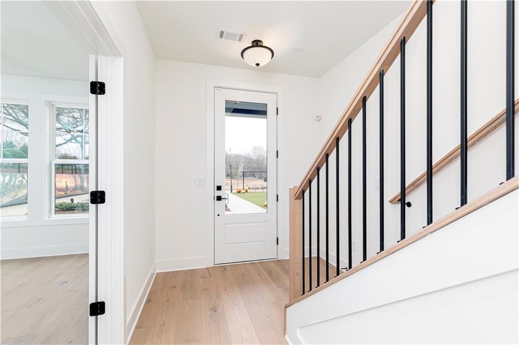 Discover the pinnacle of upscale living at Toll Brothers at Lakeview, a distinguished townhome community set within the heart of Alpharetta. Beyond your doorstep, a world of premier shopping, dining, and entertainment awaits, with effortless access to Avalon, Downtown Alpharetta, the Alpha Loop, and GA-400. Whether you're savoring a gourmet meal, exploring vibrant city life, or simply unwinding in your luxurious home, every moment is designed for elevated living. Welcome to Toll Brothers at Lakeview?where sophistication meets unparalleled convenience. The Downing offers a thoughtful layout across three levels with a welcoming foyer that seamlessly flows up to the second level. An open-concept living area is highlighted by a spacious great room that features direct access to an outdoor covered deck. A cozy casual dining area overlooks the well-appointed kitchen, complete with a large island and walk-in pantry. The luxurious primary suite is secluded on the third floor, enhanced by dual walk-in closets and a lush private bath with dual sinks, a luxe shower with seat, and a private water closet. Adjacent, a secondary bedroom features a walk-in closet and a private bath as well. Another secondary bedroom is conveniently located on the first floor off the foyer, complete with a private bath. Also offered in the home is third-level laundry, a convenient drop zone on the first floor, a powder room on the main living level, and plenty of storage.