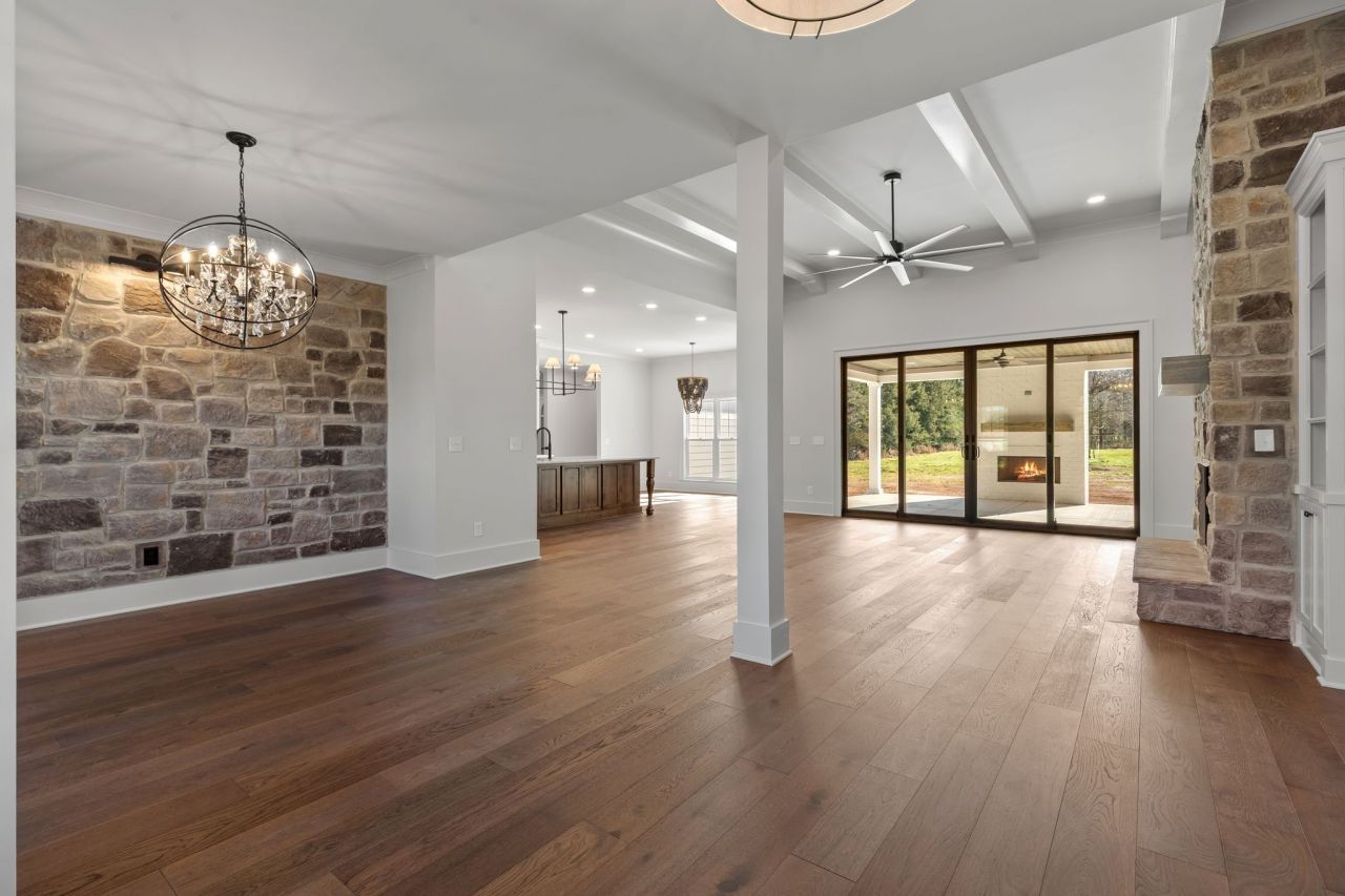This professionally designed home built by Sam Anderson sits on 2.6 acres just minutes from downtown M'boro. The entire home consists of all hardwood and tile, 4 bedrooms (2 with their own bathroom) stone fireplace, stone accent wall in formal dining room (or office), beams in great room. A huge closet in primary bedroom leads to spa like suite. Upstairs is a giant bonus room, wood flooring as well, walk in closet, mini kitchen, full bath and tons of walk in storage. Screened back porch with view to large back yard and partial wooded area. Concrete driveway, Sod, Irrigation and extensive landscaping package. 3 Car garage has 16' and 12' door for access to garage roughly 25' deep and 44' wide.