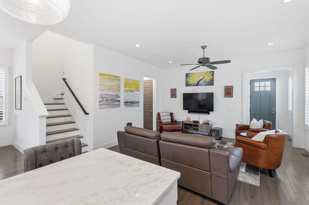 Upgraded throughout and just steps from GEODIS Park, this detached single-family home offers unbeatable access to Wedgewood-Houston, 12South, and Downtown.Inside, you'll find real hardwood floors, plantation shutters, and an open-concept main level filled with natural light. The kitchen features quartz countertops, a large island, gas range, and custom cabinetry, flowing seamlessly into the living and dining areas.The backyard was thoughtfully upgraded with an expanded patio and built-in fire pit, creating the perfect space to entertain or unwind. Upstairs, the spacious primary suite offers a tray ceiling, dual vanities, a large walk-in shower, California closets, along with two additional flexible bedrooms.Additional upgrades include a widened driveway for extra parking, a backyard drainage system, and lifetime-warranty powder-coated steel gutter guards - upgrades that add both convenience and long-term value.