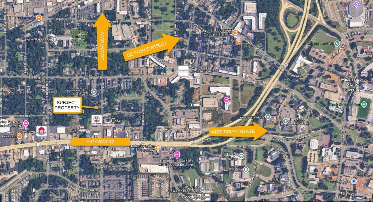 512 S Montgomery: Phenomenal Central Starkville location right in the middle of everything, This is a 0.64 acre± site. Located just off Hwy 12, and walkable to downtown, MSU, & the Cotton District. The zoning of the site is TNE - Traditional Neighborhood Existing. Selling As Is. Adjacent 1-acre site for sale (514 S Montgomery St) & could be sold together. Selling as is.