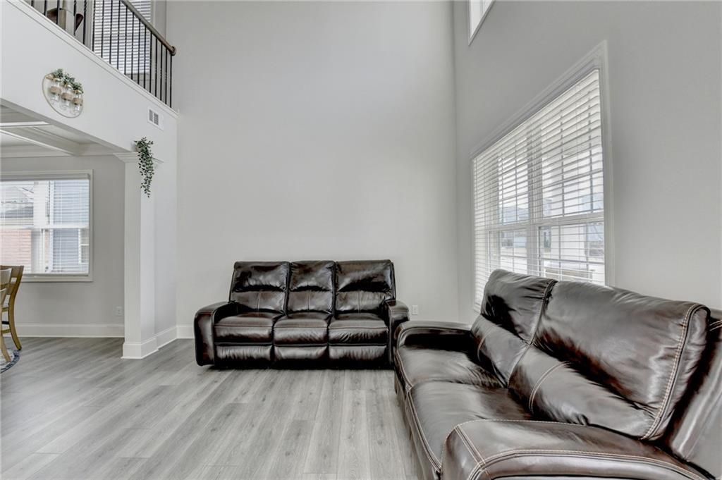 Welcome to this beautifully maintained 5-bedroom, 4-bath home in the highly desirable LORING swim/tennis community in Forsyth County, featuring the popular Grayson floor plan by DR Horton. Designed with both comfort and functionality in mind, this home offers an inviting open-concept layout, abundant natural light, and stylish modern finishes throughout. The main level features luxury vinyl plank flooring and a bright two-story family room with dramatic windows that fill the space with natural light, creating a warm and welcoming atmosphere. The spacious fireside family room with custom built-in shelving seamlessly connects to the kitchen, making it perfect for both everyday living and entertaining. The chef-inspired kitchen serves as the heart of the home and features quartz countertops, stainless steel appliances, premium white cabinetry, designer tile backsplash, a large center island, and a walk-in pantry, offering both beauty and functionality. A formal dining room with elegant coffered ceilings provides the perfect space for hosting gatherings, while the main-level guest bedroom with a full bath offers excellent flexibility for visitors, in-laws, or a private home office. Upstairs, the oversized owner's suite offers a relaxing retreat complete with a spa-style bathroom and expansive walk-in closet. Three additional secondary bedrooms?one with a private en-suite bath and two sharing a hall bath?provide ample space for family or guests. A large upstairs loft offers incredible versatility and can be used as a media room, playroom, home office, or secondary living area. The home includes a 2-car garage with additional storage space (builder option in lieu of a third-car garage). Step outside to enjoy the covered patio overlooking a spacious backyard, perfect for outdoor dining, relaxing evenings, or weekend gatherings. Residents of Loring enjoy resort-style amenities including a swimming pool, clubhouse, tennis courts, volleyball court, playground, and sidewalks throughout the neighborhood. Ideally located just minutes from GA-400, Highway 20, shopping, dining, entertainment, and Lake Lanier, this home is also zoned for top-rated Forsyth County schools and benefits from low county taxes. Move-in ready and beautifully maintained, this home offers the perfect blend of style, space, and convenience in one of Cumming's most sought-after communities. Don't miss this opportunity!