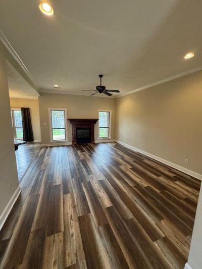 Welcome to this beautiful 4-bedroom, 3-bath home located in the highly desirable Harvesters Square subdivision in Tupelo. Nestled in a quiet cul-de-sac, this home offers both privacy and charm in one of the area's most sought-after neighborhoods. Inside, you'll find gorgeous hardwood flooring and a welcoming entryway featuring beautifully handcrafted wood details. The spacious kitchen includes an eat-at bar, perfect for casual dining or entertaining. Elegant lighting fixtures throughout the home add warmth and sophistication to every room. The dining room and living area showcase stunning double doors and a cozy fireplace, creating an inviting space for gatherings. The well-designed layout includes a convenient Jack-and-Jill bathroom and a spacious master suite featuring a double vanity.