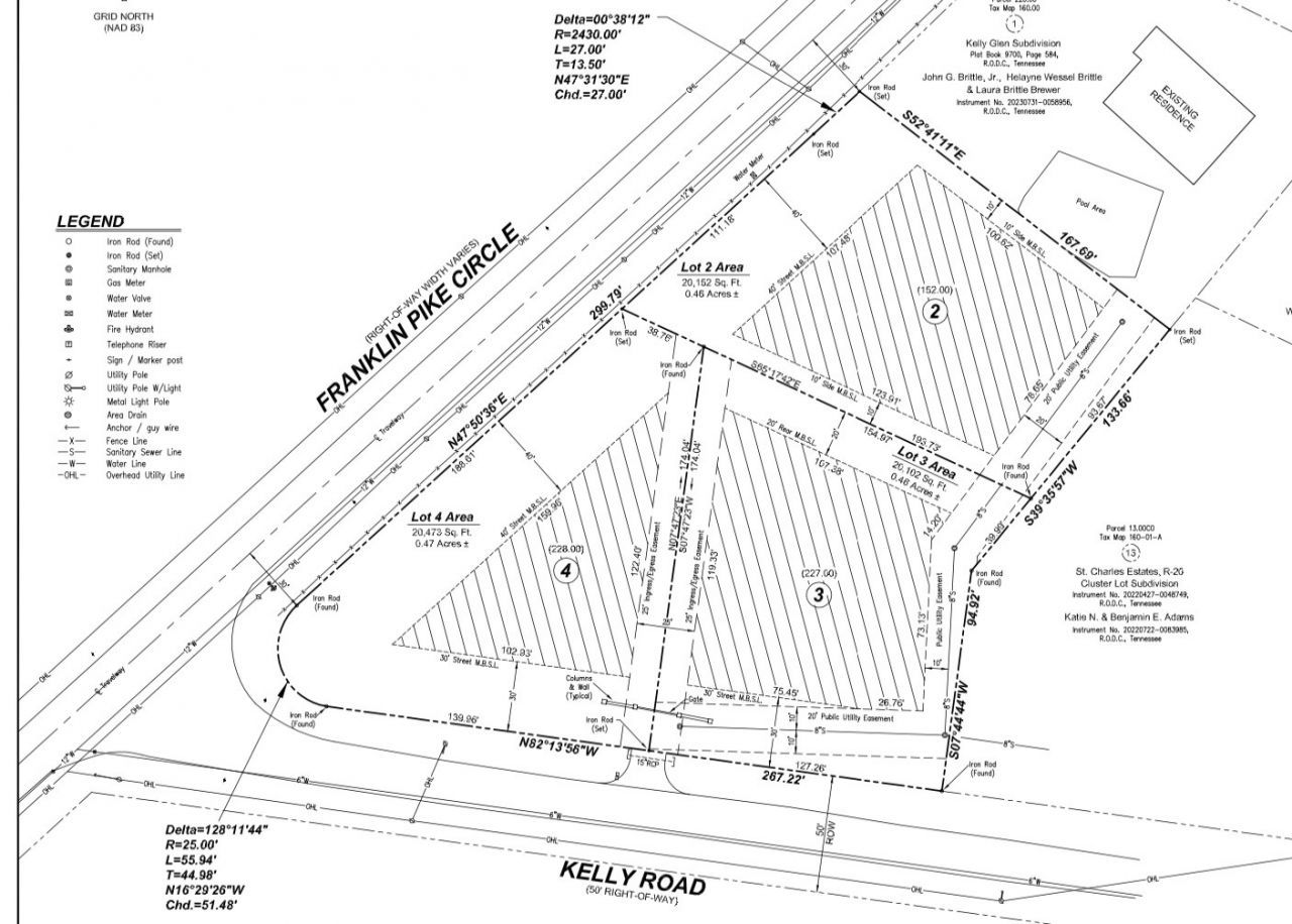 Three R20-zoned lots sold together as one development opportunity in Brentwood- 1.39 acres (three-lot total) at the corner of Franklin Pike Circle and Kelly Road. Build new construction, develop a family compound, or maximize the site's full potential under existing R20 zoning. Each lot exceeds the 20,000+ sq ft minimum, and under R20 zoning each lot may support a two-family configuration, creating potential for up to six total dwellings across the three parcels. This offers flexibility for a builder, developer, or buyer ready to bring their dream home vision to life. Situated in an established corridor seeing active luxury new construction. City water and public sewer available. Subject to Metro review and permitting. Buyer to verify all development feasibility, zoning, utilities, easements, and permitting with Metro.