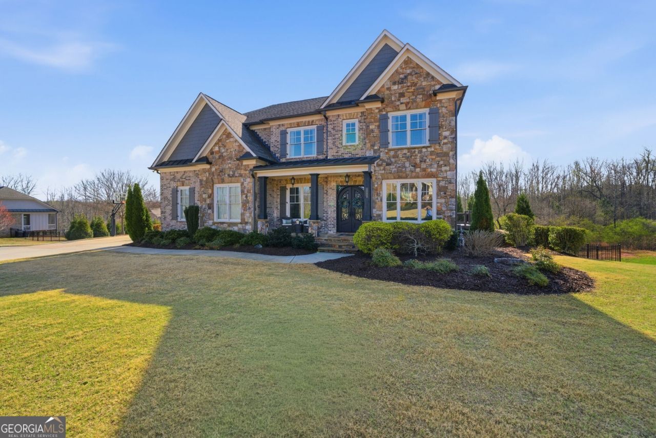 Truly one-of-a-kind custom-built home by Veritas Homes in the sought-after gated community of The Reserve at Big Creek, located in the highly desirable City of Buford School District. This intimate gated neighborhood features estate-sized lots of over one acre, offering exceptional privacy and luxury. This stunning home showcases numerous high-end upgrades, including exposed beams, coffered ceilings, tongue-and-groove inlay ceilings, custom built-in bookcases, barn doors, and five fireplaces with floor-to-ceiling stone. The luxurious owner's suite features custom closet systems, a spa-like bath with soaking tub and dual shower heads, and designer finishes throughout. Outdoor living is equally impressive with a flagstone front porch, flagstone patio, and grilling deck. Enter through custom steel double front doors into an elegant main level featuring a formal dining room, private office, butler's pantry, keeping room, and a chef's kitchen with lighted cabinetry extending to the ceiling. The oversized island with storage on both ends is perfect for entertaining, while the spacious walk-in pantry with custom shelving provides abundant storage. The great room overlooks a spectacular backyard oasis featuring a heated saltwater gunite pool and spa with waterfalls, tanning ledge, palm trees, and professional landscaping. The expansive paver pool patio offers ample space for entertaining, with additional outdoor enjoyment from the screened porch off the great room and the covered patio off the terrace level. The terrace level is designed for entertainment and comfort, featuring a home theater with elevated seating, custom bar with cabinetry and kitchen area, fully wired media room, fireplace, bedroom, and full bath. Situated on one of the best lots in The Reserve, this corner property sits higher than neighboring homes in the cul-de-sac and allows for a circular driveway. The home overlooks open space, and the backyard area beyond the pool provides room for a potential sports field. The oversized three-car garage features 9-foot openings, epoxy flooring, and non-slip coating. Additional upgrades include extensive electrical enhancements with dimmers and additional lighting, sprinkler system, invisible electric fence, video camera system, under-decking system, new tankless water heater, Flow by Moen leak detection system, and a concrete-walled safe room. Too many upgrades to list this exceptional home combines luxury, privacy, and thoughtful design throughout.