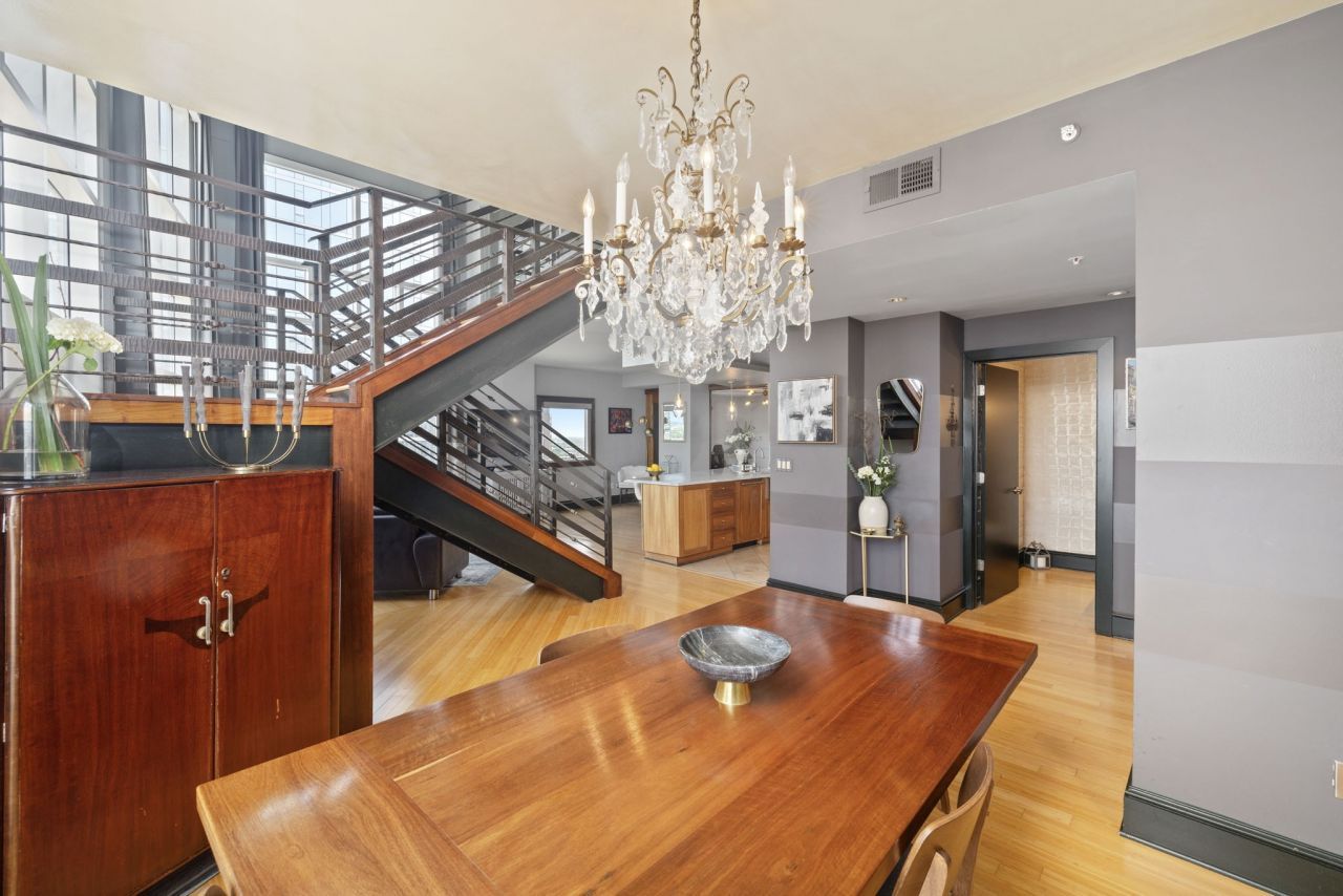 Stunning downtown Nashville penthouse condo with luxurious features! A perfect space for someone who appreciates modern design and comfort. Key Features: PENTHOUSE LAYOUT: Two story with spacious living and dining areas, emphasizing bright spaces and modern aesthetics. BALCONY & VIEWS: Offers captivating views of downtown Nashville from the balconies and living spaces on both levels, specifically views from the Capital to the Cumberland River. WINDOWS & FLOORING: 18' Floor-to-ceiling windows bring in natural light, complemented by hardwood floors. PRIMARY SUITE: A large primary bedroom with a mega walk in closet with island built in drawers, large bath area with double vanities, separate tub and shower and ample cabinetry/storage. KITCHEN HIGHLIGHTS: Equipped with stainless steel farmer's sink, high-end appliances, including a Sub-Zero fridge, and gorgeous marble countertops with a large island. A walk-in pantry and wet bar with wine fridge add to the functionality. LAUNDRY ROOM: A spacious laundry room with cabinetry for extra storage. Holds full size washer and dryer. ELEGANT DETAILS: Features like incredible wood divider doors, modern light fixtures, trim work, retractable blinds, metal handrails, and a cozy atmosphere enhance the overall feel of the home. An ideal blend of luxury & comfort in the heart of downtown Nashville! 2 assigned parking spaces. Unit 2300 next door is also for sale and exploring the feasibility of combining the two units into one spacious penthouse is an incredible opportunity. Potential benefits and features of merging units: INCREASED SQ FOOTAGE: This would significantly enhance the living area allowing larger entertaining areas. ENHANCED VIEWS: With more windows and another corner unit, the panoramic views could be even more breathtaking. FLEXIBLE LAYOUT: Design potential for guest suites or entertaining. Amenities: Outdoor Patio w/grills, Pool Table/Shuffleboard, Lounge/Meeting areas, Coffee Bar, Music Room. A must see!