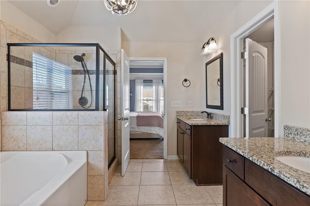 Built in 2015 and meticulously maintained by its original owner, this traditional brick-front home offers over 3,700 square feet of finished living space, plus approximately 1,800 square feet of unfinished basement space ready to customize.The main level is designed for both everyday living and long-term flexibility. A private office with double French doors sits just off the foyer, facing the sunny front yard. A main-level bedroom and full bath provide an ideal setup for guests or extended family. The spacious family room with gas log fireplace and mantel flows seamlessly into the kitchen, creating a comfortable central gathering space.The kitchen features a large island, granite countertops, stained cabinetry, double ovens, gas cooktop, built-in microwave, breakfast area, and a generous walk-in pantry. A butler's pantry connects the kitchen to the formal dining room with trey ceiling, offering additional storage and serving space. From the breakfast area, step onto the rear deck overlooking protected green space, providing a peaceful and private wooded backdrop.Upstairs, you'll find four additional bedrooms and three full baths, including a spacious primary suite with trey ceiling. The primary bath includes separate tub and shower, double vanities, and a large walk-in closet. An upstairs laundry room adds convenience. A dedicated media room with large screen and built-in speakers creates a true secondary living space for movie nights or entertaining.The full daylight basement is stubbed for a bath and walks out to the backyard. With nearly 1,800 square feet, it offers excellent potential for additional bedrooms, recreation space, or even a future secondary kitchen; well suited for extended or multigenerational living.Situated on a level lot with a level driveway, the home includes a covered front porch, two-car garage with openers, and an electric vehicle charging station. The usable backyard backs to protected green space, with wooded buffers enhancing privacy on multiple sides.Located in a sought-after swim and tennis community with sidewalks and streetlights, amenities include a swimming pool and lighted tennis courts. Close to top-rated schools, the public library, parks with baseball, softball, football and lacrosse fields, shopping, restaurants, and convenient access to GA 400 and Highway 20.This well-cared-for home offers space, privacy, and flexibility in a highly convenient location ? a layout that works today and adapts for the future.
