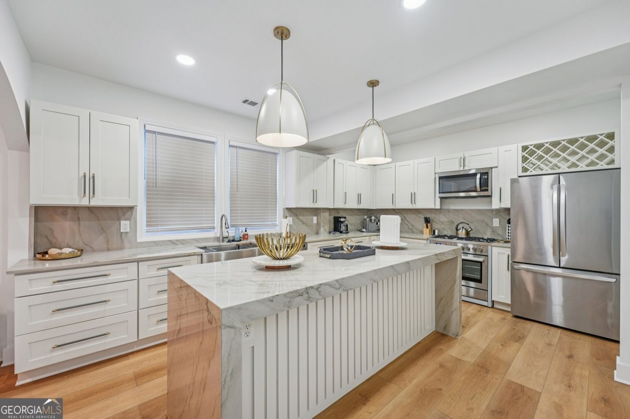 Fully gut-renovated 8BR / 7.5BA residence in the heart of Old Fourth Ward just two blocks from the Atlanta BeltLine Eastside Trail and minutes from Inman Park. Spanning 6,630 sq ft across three fully finished levels, this exceptional property offers a rare combination of luxury scale, modern finishes, and flexible living rarely found in the neighborhood. Originally a five-bedroom home, the property underwent a comprehensive down-to-the-studs renovation and lives like new construction. Each level features its own full kitchen, living room, dining and laundry areas, creating three complete living environments within one home-ideal for extended households, hosting long-term guests, or creating multiple private living suites. High-end finishes are featured throughout, including quartzite countertops, marble tile bathrooms, new custom cabinetry, updated flooring, and two marble fireplaces. Four bedrooms function as true primary-sized suites, each with private en suite bathrooms featuring soaking tubs-an exceptionally rare offering. The fully finished daylight terrace level features 10-foot ceilings and its own front entrance, allowing the space to function as a private living area. Outdoor spaces include a large front porch and two rear decks overlooking the property, providing multiple areas for relaxation and entertaining. Located just two blocks from the BeltLine Eastside Trail and positioned between Ponce City Market and Krog Street Market, the home sits in the center of one of Atlanta's most vibrant pedestrian corridors. The Freedom Trail Path is located just a few houses away, with easy access to Centennial Olympic Park, Mercedes-Benz Stadium, Midtown, and Downtown-just 1-2 miles away. Restaurants, parks, nightlife, coffee shops, and cultural destinations are all within a quick walk or bike ride. This is a rare opportunity to own a large-scale, turnkey property in one of Atlanta's most dynamic and vibrant neighborhoods.
