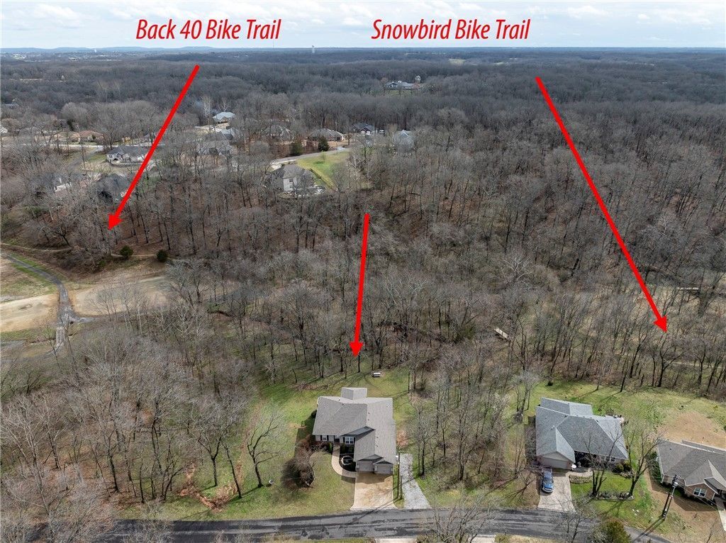 Located in one of Bella Vista's most sought after outdoor corridors, this home offers direct access to the Snowbird section of the Back 40 Trail system just behind the property. Enjoy quick access to the golf course, Razorback Greenway, and nearby community amenities including a pool, playground, pickleball courts, golf, and a clubhouse, creating a true hub for active living. The flexible floor plan features three bedrooms on the main level, an eat in kitchen, and a formal dining space that can easily serve as a home office. The walk out basement expands the living space with a large bonus room ideal for a gym, workshop, playroom, or media room, along with a fourth bedroom and ensuite bath. Covered decks overlook a large, flat backyard surrounded by mature trees, offering wooded privacy, great curb appeal, and a peaceful bike friendly setting with direct trail access just steps away.