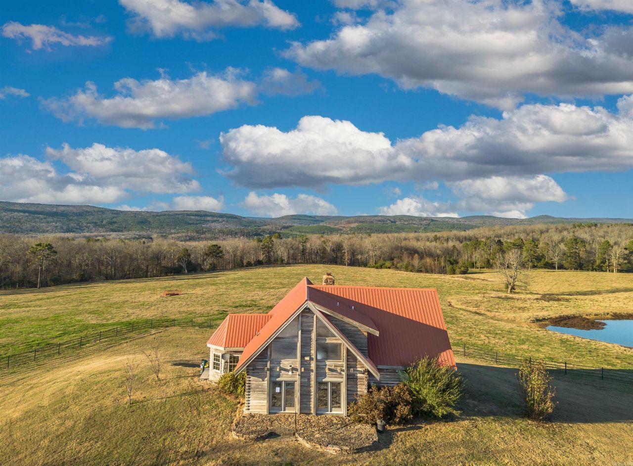 Welcome home to the ultimate property on 45 acres M/L with a stunning view of the Ozark Mountains! The house maximizes the view with its windows overlooking the meadow with three ponds and woods on the north side. This gorgeous cedar home has quality throughout. Walkout to the balcony view from both the living room and primary bedroom. Too many beautiful features to mention, with custom carpentry, granite countertops, full-house Generac generator, just to mention a few. This acreage isn't just beautiful, it's practical! Four large shops, including a 40'x80' red iron (3- 14' overhead doors), a 40'x60' red iron (with heated office and bathroom 2-14' overhead doors), 40'x40' metal truss shop, and 60'x36' drive thru wood truss. ALL have electricity. PIPE FENCE throughout! 32 acre hay field with HUGE hay barn across road is also for sale with MLS #25047378.