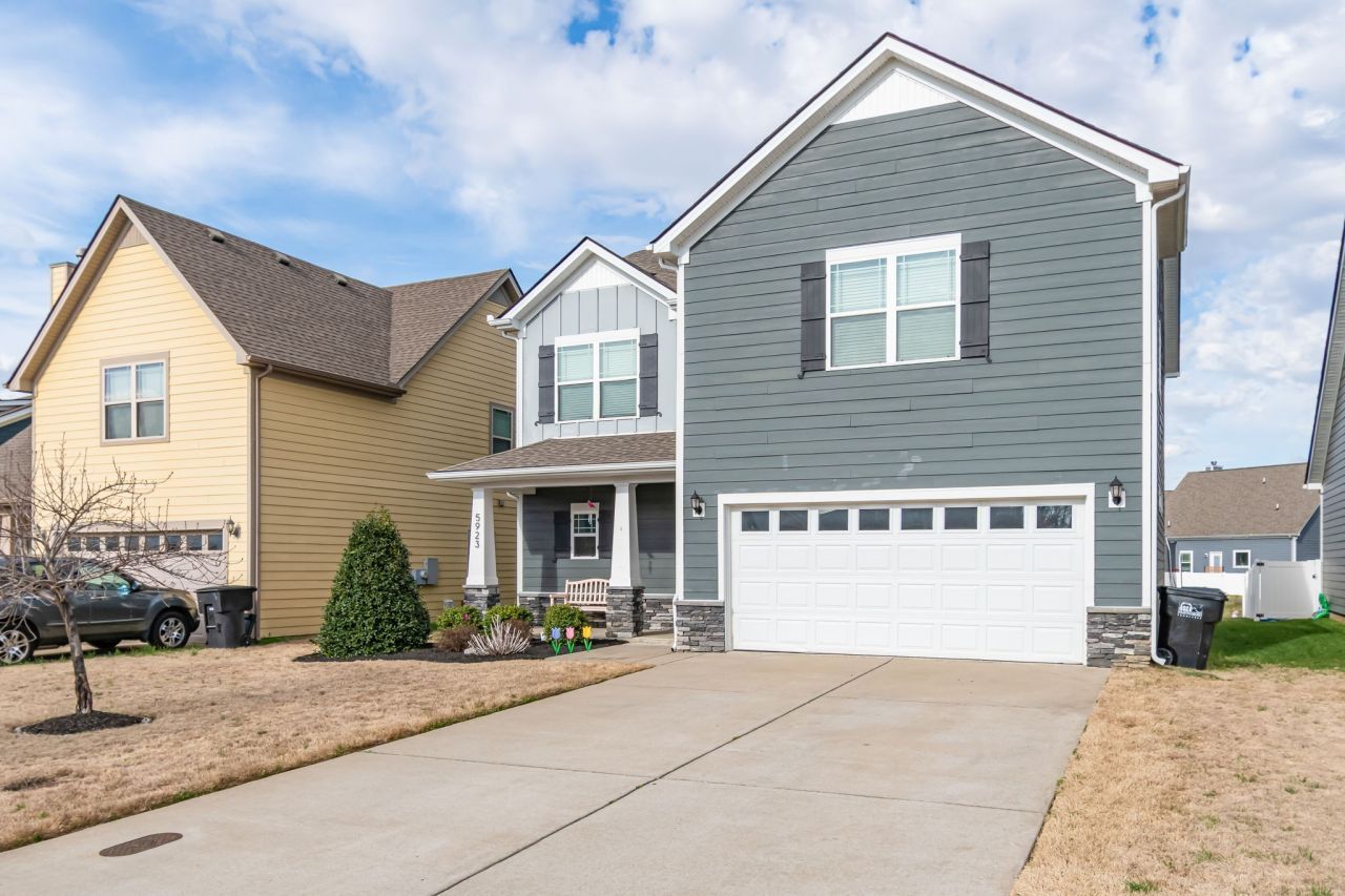 Built in 2019, this well-kept 5-bedroom home offers space, comfort, and a great location in Murfreesboro's Enclave at Berkshire community.The main level features an open floor plan with low-maintenance laminate flooring and plenty of natural light. The kitchen includes stone countertops, stainless appliances, a pantry, and a center island with sink and bar seating, creating an easy flow for everyday living or entertaining.Upstairs you'll find all five bedrooms along with a conveniently located laundry room. The primary suite offers a spacious layout with a walk-in closet and a private bath featuring both a soaking tub and separate shower. The large bonus room above the garage (14x17) includes a closet and window, offering flexibility as a fifth bedroom, home office, or media room.Step outside to the covered back patio with ceiling fan, overlooking the green common area behind the home that adds extra breathing room and a pleasant view of trees.Additional features include fresh interior paint, wood window blinds throughout, a covered front porch, two-car garage, and concrete driveway.Residents of The Enclave at Berkshire enjoy sidewalks throughout the neighborhood along with a pool, clubhouse, park, playground, and regular community events. Convenient access to I-840 makes it easy to reach the greater Murfreesboro area and beyond.