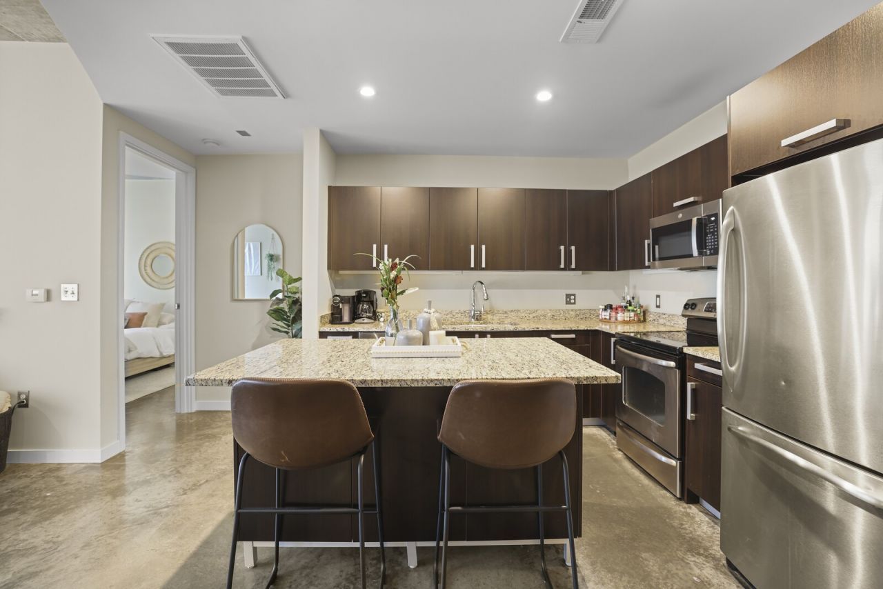 Experience the best of urban living in this stylish 2-bedroom, 2-bath condo located in the iconic Icon in the Gulch. With sweeping city views from both the living room and bedrooms, this modern residence places you right in the heart of one of Nashville's most vibrant neighborhoods - with multiple fitness areas and two pools. The open-concept layout features a sleek kitchen with a new microwave and dishwasher, complemented by polished concrete floors and fresh interior paint completed in 2022. Step out onto your private balcony and take in the energy of the city below, perfect for morning coffee or evening cocktails. Just steps from the city's best dining, shopping, and nightlife, this condo offers unbeatable walkability to all the Gulch hotspots. Don't miss your chance to own a piece of Nashville luxury living! Up to 1% lender credit on the loan amount when buyer uses Seller's Preferred Lender. Parking spots included: 589 and 590