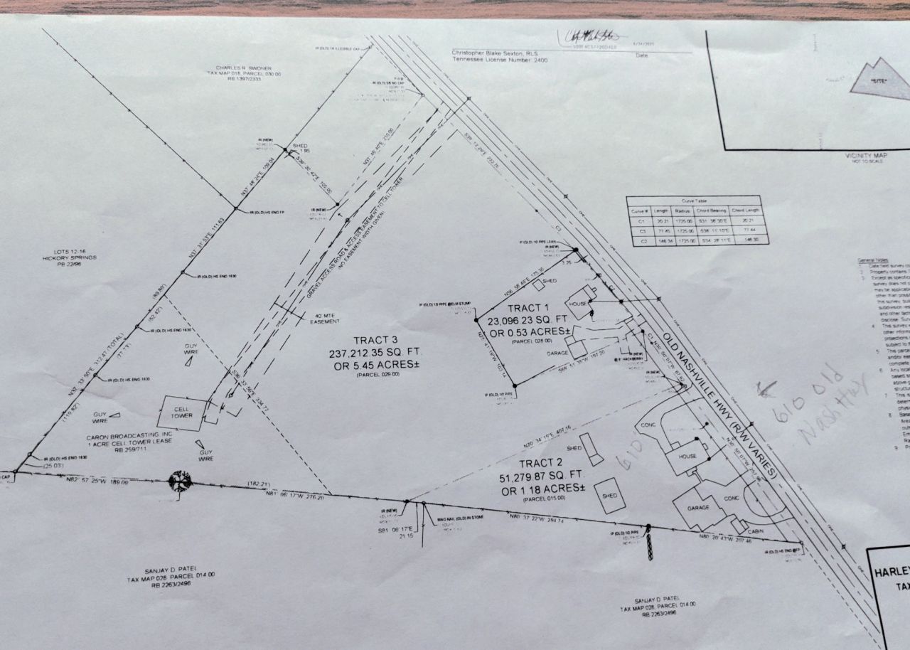 4.98 Acres , Land with 1 building and 1 shed. The building is not intended to be used as a residence. There is city sewer, water, gas and electric at the road. 1 gravel drive easement on the side of the property for a leased cell tower at the back of the property. In the survey picture, tracts 3 (minus the 1 acre for the tower) as well as tract 1 are included in this sale. The building and shed are on tract 1. The lot is partially wooded. There is a home that is currently occupied at 610 old Nashville highway. Please do not try to access the land or disturb the homeowners without an appointment. The land that 610 old nashville highway is on is 1.18 acres and there is an option to purchase it after the closing of this deal. The land at the back of the property with the cell phone tower is 1 acre and is currently leased for the next 4 years. It is negotiable as well and would need to be discussed further with a serious buyer.Do not miss this great opportunity in a quickly developing area!