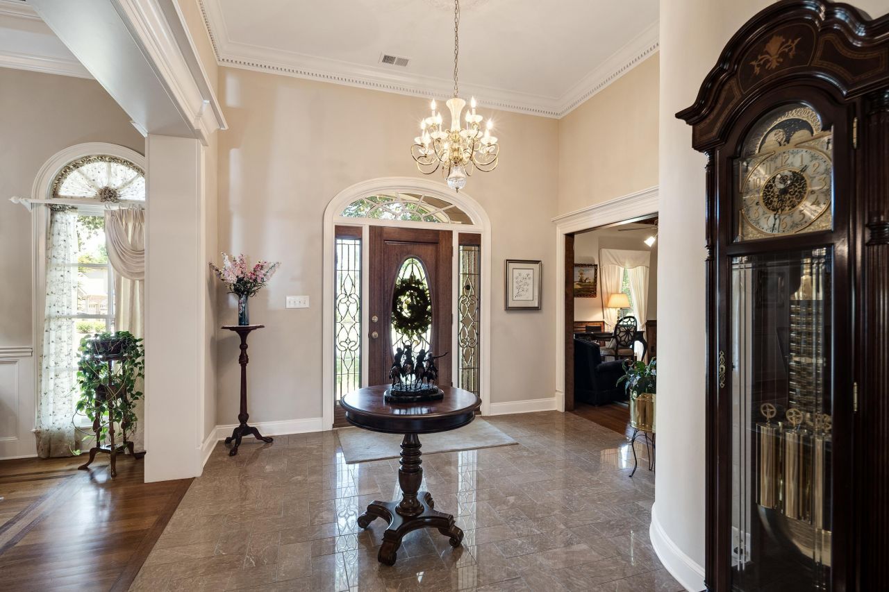 Step into timeless elegance with this one-owner custom home, meticulously built by renowned builder Kenny Cook. Thoughtfully designed and immaculately maintained, this 4-bedroom, 4.5-bath residence is brimming with luxurious upgrades and high-end finishes throughout. From the moment you enter, you're welcomed by stunning marble flooring, soaring ceilings, and detailed crown molding that speak to the home's quality craftsmanship. The main living areas feature rich, nail-down hardwood floors-even on the second floor-for a seamless and upscale feel. The baths are adorned with marble countertops, blending style and functionality. You'll also find a huge private study/office, perfect for remote work or a quiet retreat. Designed for comfort and convenience, this home includes a generator, irrigation system, a built-in safe, and a walk-in expandable attic. Enjoy outdoor entertaining year-round with a built-in grill overlooking a beautifully landscaped lawn! Special financing.