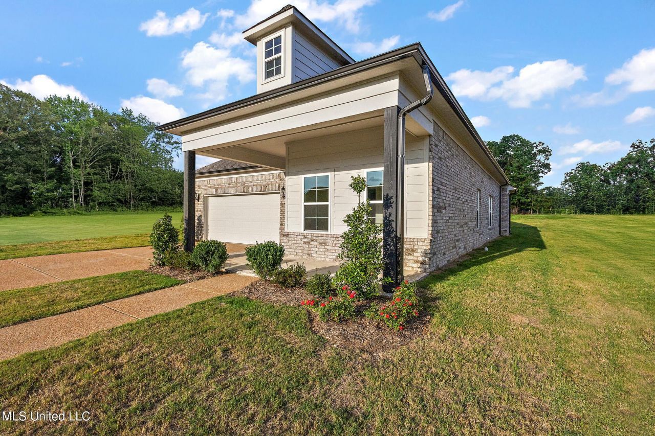 This exquisite home boasts an array of high-end features, including Luxury Vinyl flooring throughout the first floor, custom cabinetry w/ soft closing cabinet doors, elegant Quartz countertops, and stainless-steel appliances. As you enter through the grand 9-foot front door, you are welcomed into the foyer. Just off the foyer are the two large downstairs guest bedrooms and a guest bath featuring a tub/shower combination adorned with a striking tiled wall that extends to the ceiling. Head the other direction and you will be led to the living area that features a massive living room along with a formal dining room as well. We cannot forget to mention the kitchen that is designed for both functionality and style, featuring a Quartz Kitchen Island that overlooks the living room.This thoughtfully designed split floor plan features the primary suite just off of the living room, while the two additional bedrooms and a full bathroom are located at the front of the home. The primary bath offers a luxurious experience with a walk-in shower, jetted tub, two vanities, and a generous walk-in closet.Ascend the stairs to discover a spacious 13x10 bonus room, complete with a closet, which can serve as a fourth bedroom or an ideal recreational space. Additionally, a walk-in attic provides ample storage solutions.Step outside to enjoy serene views from the oversized 25x9 covered patio, an ideal space for relaxation and entertaining. Don't miss this opportunity to secure this stunning home in this Lake Cormorant Community?schedule your visit today!