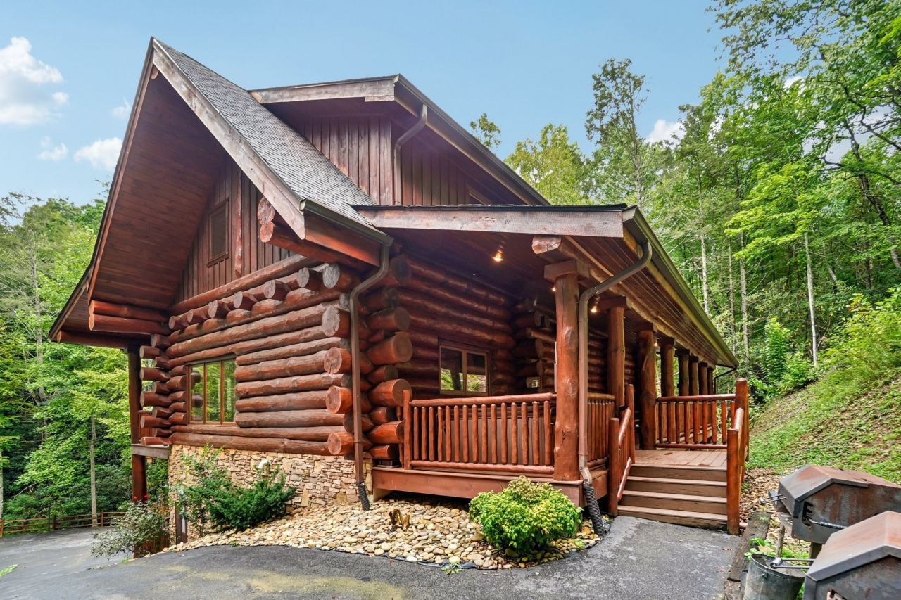 Luxury meets mountain charm in this stunning 4,500+ sq ft log cabin retreat, nestled on over 2 private acres in highly sought-after Pittman Center. Crafted from hand-peeled lodge pole pine logs, this 5-bedroom, 6-bathroom estate offers a perfect blend of rustic elegance and modern comfort, along with impressive rental income. The property generates impressive rental income. ****New roof and other updates****The main level features soaring vaulted ceilings, a dramatic stacked stone fireplace, and massive picture windows that frame peaceful forest views and a serene mountain stream. A chef's kitchen includes custom hickory cabinets, high-end appliances, and a 14-foot log dining table. The spacious great room with four oversized sofas is ideal for entertaining. The primary suite offers a spa-like en-suite bath and walk-in closet. Step outside to the wraparound deck with outdoor dining, a hot tub, and wooded views.Upstairs you'll find two large en-suite bedrooms and a flexible loft area. The lower level is made for fun, complete with a large game room, second stone fireplace, pool table, Foosball, arcade games, and additional living space. Two more en-suite bedrooms, a bunk room with log beds, and four portable memory foam beds comfortably accommodate large groups. Each lower-level bedroom opens to its own private deck.Enjoy outdoor living with multiple decks, a fire pit, picnic areas, walking bridge, charcoal grills, and a streamside sitting area. An in-ground basketball goal and private gated driveway add even more appeal.Additional highlights include a whole-house security system, high-speed internet, city-maintained roads, and garbage pickup. There is no HOA. Located just minutes to downtown Gatlinburg, the Smokies, and Bent Creek Golf Course. Turnkey and income-producing, this lodge offers a rare opportunity for both a private retreat and a proven investment.