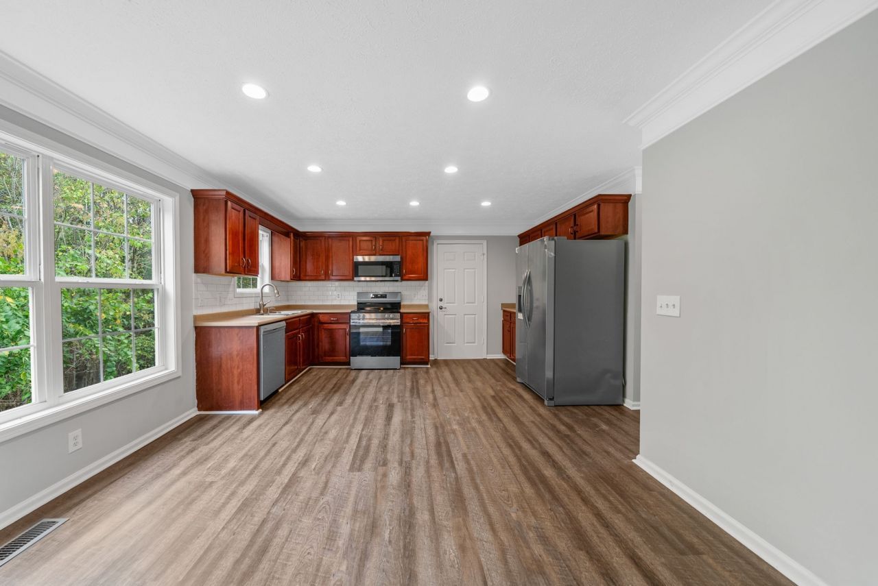 Looking for an unfinished or finished Basement AND A BONUS ROOM? Welcome to a beautifully renovated home in one of Clarksville's most desirable neighborhoods. Step inside to an airy, open-concept layout where the living, dining, and kitchen spaces flow together for effortless gatherings. The kitchen is the heart of the home-think generous prep space, plenty of cabinetry, and sleek, stainless appliances-so weeknight dinners and Saturday brunches feel equally at home. The private primary suite offers a calm retreat with a spacious bath and a true walk-in closet. Two additional bedrooms sit on the opposite side of the home for flexibility-guest room, office, or play space-plus a well-appointed second bath. An actual laundry room keeps the day-to-day tidy, and the two-car garage adds welcome storage for gear and holiday bins. Outside, enjoy an easy-care yard ready for grilling, string lights, and fall firepits. Convenient Clarksville location with quick access to shopping, dining, parks, and an easy commute to I-24 and Fort Campbell-so you can spend less time driving and more time living. The property extends beyond the backyard fence. No backyard neighbors.