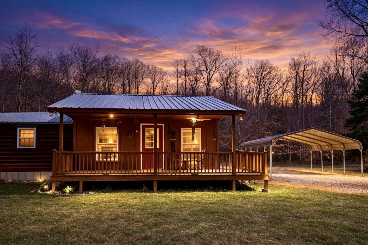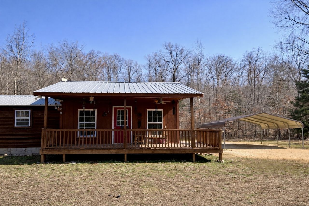 Private Tennessee Cabin Retreat in Gated Community on 46.7 Acres with a Dream Shop, Large Entertaining Deck & Multi-Building Setup. Meticulously maintained property with trail system throughout, multiple springs, and amazing views of the valley. 2 Bedrooms with an office and 1 bathroom. Expansive sun deck off the back of the home that has been reinforced to hold as many as you can gather. Tongue and groove pine throughout the inside of the home gives a warm and inviting feel. The 30X40 Shop has covered porches on each side where you can relax and take in the sounds of nature, entertain friends, or work on projects. Multiple outbuildings for storage or a children's playhouse where imaginations can run wild. Home has upgraded electrical wiring including four breakers on the pole, separate boxes for the well, the shop, the sheds, and the electric has been ran underground from the pole to the Cabin. This home also has upgraded spray foam in the walls, attic, and underneath. Only a handful of people live in this secure, gated community and they consider each other family. Less than 10 min from Crooked Creek Marina. Come see what dreams may come with this one of a kind property!! Drone footage to come!!