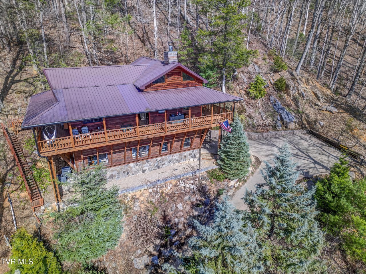 This very special log cabin is tucked against the mountains of South Johnson City on 5 acres of wooded land with stunning views! Wonderful Airbnb opportunity as the home is available fully furnished! As you enter the property, you will love crossing over the beautiful creek (see the attached video to hear it). The land is heavily wooded with opportunities galore to create paths and view spots or just to explore. Enjoy relaxing on your wrap around porch listening to the water below while checking out those views! There are three bedrooms and two and a half baths in the home. The living room is perfect for family gatherings with a soaring stone fireplace as the focal point of the space. The kitchen is a dream with waterfall granite countertops, stainless steel appliances and beautiful wood cabinets. Looking out over the living room is a comfy loft that could serve as an office, game room, library, etc. The home is located in a fantastic location with easy access to all of the amenities and entertainment in Johnson City while being close to Elizabethton, the beautiful mountain towns for skiing, hiking and exploring and about 1 hour from Asheville. The property has had a few recent updates including: new septic tank with a new motor and rain gutters.
