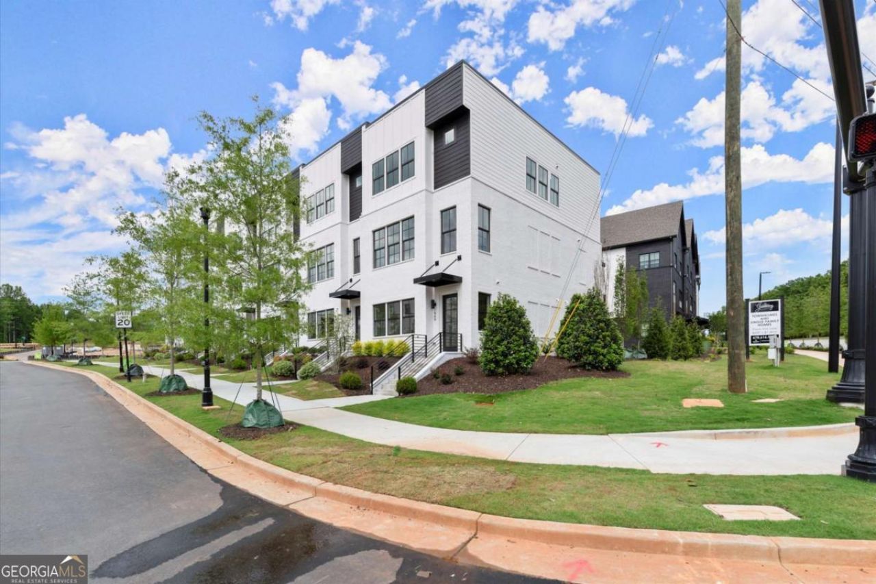 Introducing the Adeline (END-UNIT), a Contemporary style townhome boasting 2,160 square feet of luxurious living space. With 4 bedrooms, 3.5 bathrooms, and three stories of thoughtfully designed interiors, this home offers the perfect blend of modern style and comfort. As you enter the first floor, you'll find a spacious guest suite complete with its own private bathroom, ideal for visitors or a home office. The entryway also provides access to the attached two-car garage, ensuring convenience. Ascend to the second floor to experience the heart of the home, an open concept living area designed for both relaxation and entertainment. The expansive living room, featuring 10 ft ceilings and large windows, seamlessly flows into the dining area and gourmet kitchen. The kitchen is a chef's dream, boasting Kitchen Aid stainless steel appliances, quartz countertops, sleek cabinetry and a generous island. The third floor is dedicated to privacy and tranquility housing the primary suite and additional bedrooms. The luxurious Primary Suite features a walk-in closet and spa-like en-suite bathroom with a raised maple dual vanity and glass enclosed shower. Two additional well-appointed bedrooms share a stylish full bathroom, and a laundry room on this floor adds to the home's functionality. Located in The Gathering, a Vibrant new community, just minutes from downtown Alpharetta, Avalon and top-rated schools as well as prime access to the Alpha Loop. Enjoy our community amenities such as a Community Garden, Firepit and Dog Park. This home provides the ultimate in modern suburban living. Experience the perfect combination of style, comfort and convenience!! This home is an end unit and is MOVE-IN READY!! Photos are of actual unit. Agent is on-site Monday, Tuesday, Thursday, Friday & Saturday (10:00-5:00) and Wednesday and Sunday (1:00-5:00).