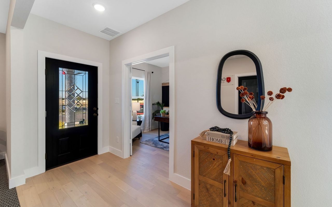 The Trinity offers an elegant two-story design with refined finishes and exceptional space. A private study welcomes you inside, leading to a dramatic two-story family room filled with natural light and open to the chef's kitchen and breakfast area with access to a covered patio. The main-level primary suite provides a serene retreat with dual vanities, separate tub and shower, and an expansive walk-in closet. Upstairs features a spacious game room, three additional bedrooms, and a full bath-perfectly balancing style, comfort, and functionality.