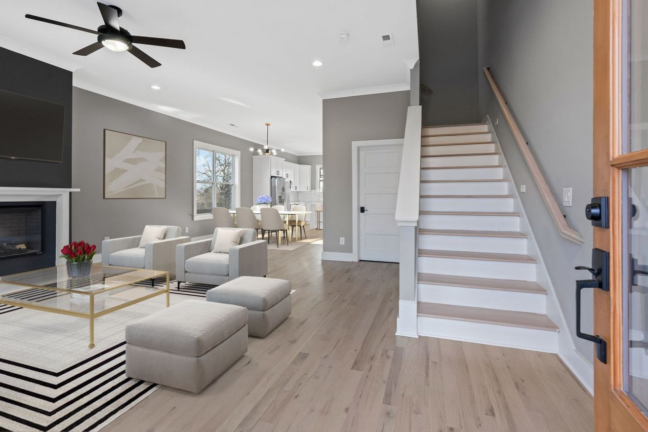 Welcome to 752B Croley Dr - MOVE IN READY - a recently constructed 3-bedroom, 2.5-bath home located in the heart of West Nashville's desirable Charlotte Park neighborhood. This move-in ready 1,959 sq ft residence blends luxury finishes with an open-concept layout, ideal for both everyday living and entertaining. Step inside to find soaring ceilings, a sleek fireplace, and beautiful oak hardwood floors throughout. The chef's kitchen features a quartz waterfall island, soft-close cabinetry, stainless steel appliances, and a walk-in pantry. Upstairs, the spacious primary suite includes a walk-in closet and a spa-inspired bath with dual vanities and a glass-enclosed shower. Enjoy outdoor living with a covered front porch, covered back patio, and a private fenced backyard-perfect for pets, entertaining, or relaxing evenings. With two dedicated parking spaces and thoughtful design throughout, this home delivers style, function, and comfort.