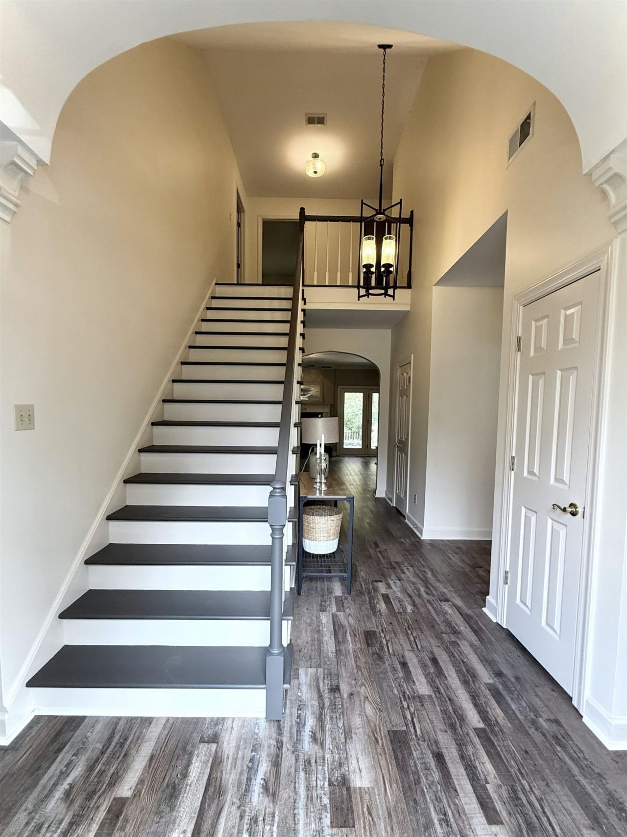 Perfect family home with 4 large bedrooms, 3 baths in a lovely, quiet neighborhood w/lake, playground and walking trails! New flooring and fresh interior paint! Open foyer, arched doorways and transom greet you as you enter. Large great room with lots of natural light and fireplace, opens up to large deck for outdoor living. Primary bedroom has a fireplace and en-suite primary bath with his & her closets. Dining room connects to kitchen with pantry and breakfast area with a picture window overlooking backyard. Smooth ceilings throughout downstairs. Upstairs has 3 large bedrooms with walk in closets; 1 full bath and a large playroom that could be 5th bedroom. Private and peaceful backyard backs up to wooded area. Collierville schools. A must see! (Floorplan included in photos.)