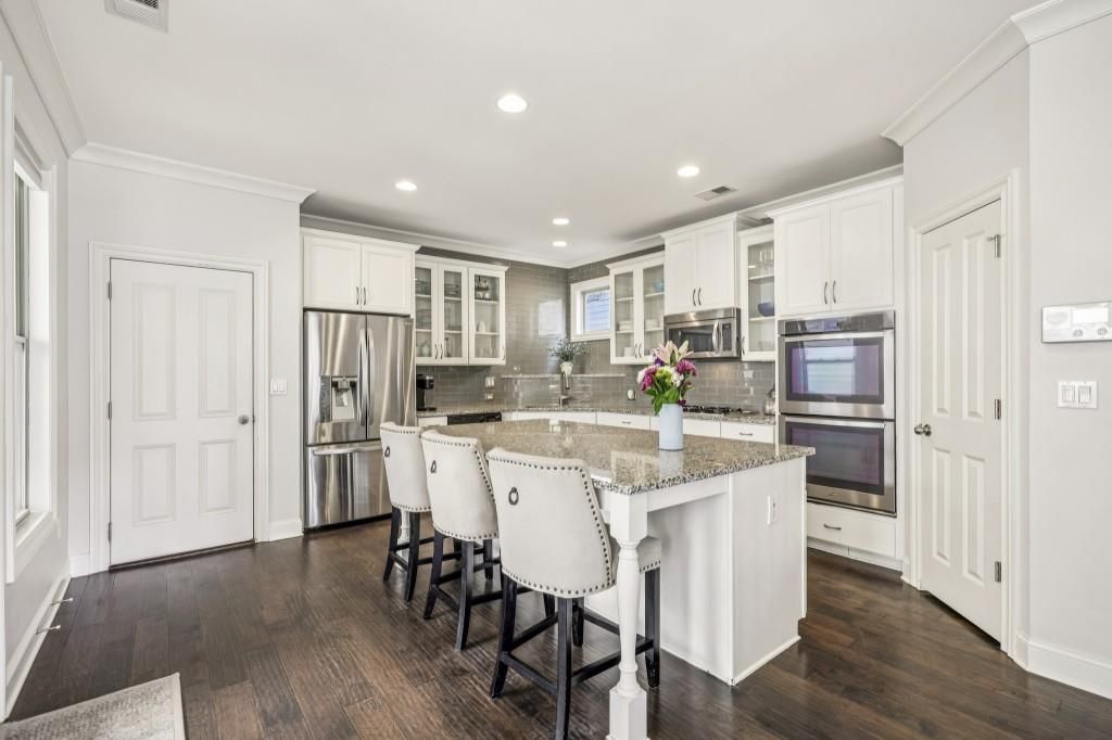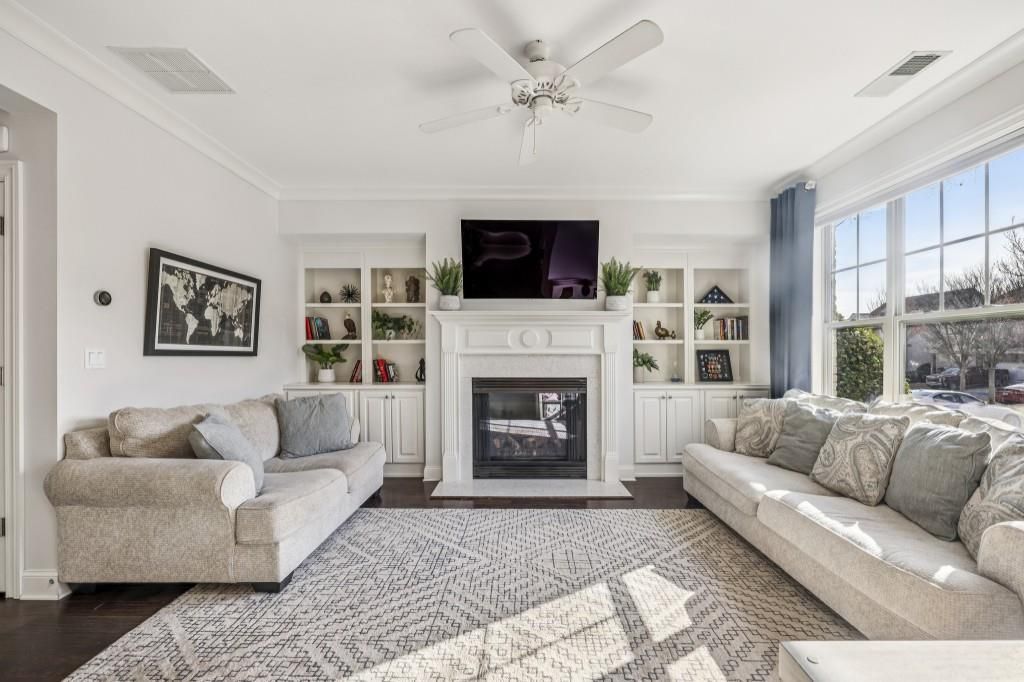 Brick Front French Country Traditional! Nestled in the desirable Jamestown Gated Community, this home offers timeless architecture and an active, connected neighborhood lifestyle. Residents of Jamestown enjoy exceptional amenities including Tennis Courts, Pickleball, and a Community Pool, all complemented by Low HOA Fees that make it easy to enjoy the neighborhood's vibrant atmosphere. Lawn Maintenance including Grass Cutting, Mulching, and Pruning -- is also included in the HOA, allowing for easy, low-maintenance living. Step inside to a warm and inviting Fireside Family Room featuring Built-In Shelving, creating the perfect space to relax, gather, or entertain. Rich Dark Hardwood Floors flow seamlessly through the main living areas and lead you into a centrally located Dining Room filled with natural light from an abundance of windows - an ideal setting for both everyday meals and special occasions. The bright and stylish Kitchen is designed for both function and gathering, showcasing Granite Countertops, a classic Subway Tile Backsplash, Stainless Steel Appliances, and a large Central Island with a Breakfast Bar that provides additional prep space and seating. A door just off the kitchen opens to the Covered Patio, creating an effortless transition to outdoor dining or relaxing evenings outside. A convenient Powder Room completes the Main Level. Upstairs, the spacious Primary Suite offers a peaceful retreat with a Tray Ceiling and a private Ensuite Bathroom featuring Dual Vanities, a Large Soaking Tub, a Separate Tiled Shower, and a Spacious Walk-In Closet. Two additional Secondary Bedrooms share a well-appointed Hall Bathroom, providing comfortable space for family, guests, or a home office. The Third Level expands the home's flexibility with an additional Bedroom and Full Bathroom, creating the perfect space for guests, a private retreat, or a quiet Home Office. This Upper-Level Suite offers wonderful separation from the main living areas while still providing comfortable, functional living space. The location is truly exceptional. Just minutes away you'll find the shopping, dining, and entertainment destinations of Halcyon, along with everyday conveniences like Trader Joe's. Outdoor enthusiasts will love easy access to the scenic Big Creek Greenway, offering miles of walking and biking trails. Commuters benefit from quick access to GA-400, with the upcoming McFarland Exit set to make connectivity even easier. In addition, you're only eight minutes from Avalon and Downtown Alpharetta, placing some of North Atlanta's best restaurants, boutiques, and entertainment right at your fingertips. With an Alpharetta Address and the advantage of Forsyth County Taxes, this home offers the perfect blend of lifestyle, convenience, and value in one of the area's most desirable communities.