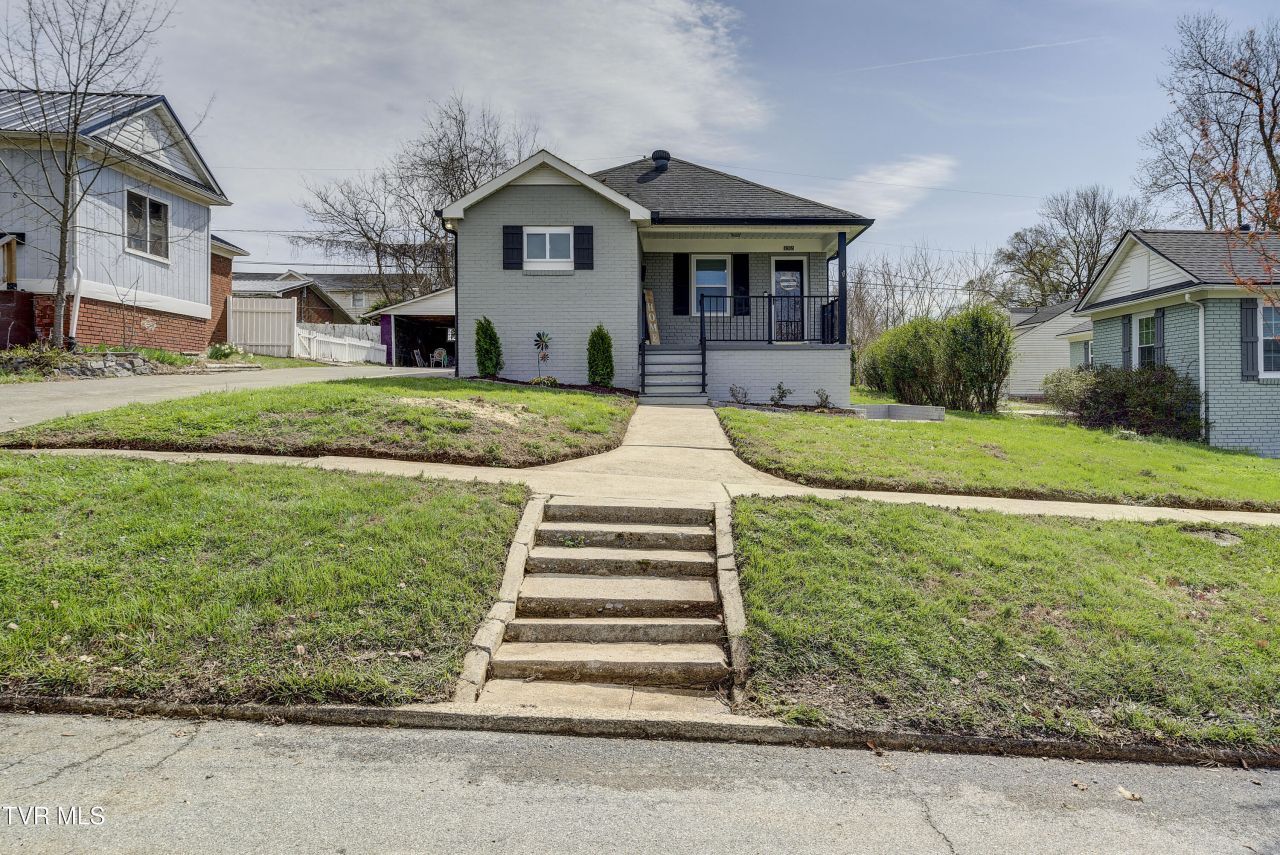 Completely updated and move-in ready, this 3-bedroom, 2-bath brick home offers character, function, and a convenient location with quick access to downtown. From the moment you arrive, you will appreciate the painted brick exterior, covered front porch, off-street parking with a detached garage and attached carport, and a setting that offers nice views of Bays Mountain.Inside, the home blends charm and modern updates with a layout that makes great use of the space. The main level features a comfortable living room, dedicated dining room, updated kitchen with white shaker cabinetry, subway tile backsplash, stainless appliances, and good cabinet and counter space. The primary bedroom includes access to the updated primary bath and features a walk-in shower, double vanity, and laundry closet. Both bathrooms have been renovated with clean and tasteful finishes. The additional bedrooms offer flexibility for family, guests, office space, or hobbies.The finished basement adds valuable extra living space with a large family room that can serve as a second den, media room, playroom, office, workout area, or multipurpose flex space. There is a large amount of additional storage through the white door into the root cellar. The basement also offers convenient exterior access, making it even more functional for everyday living. Unique spiral staircase adds personality and character to the home and help set it apart from the typical layout.Outside, you will find usable yard space, a fenced rear yard area, patio space, and plenty of room for parking and storage. Whether you are looking for a primary residence or an investment opportunity in a strong location, this home offers a lot of versatility.Conveniently located near downtown Kingsport, this home offers quick access to shopping, dining, major employers, and outdoor recreation. Roughly 5 minutes to Downtown Kingsport, around 5 minutes to Eastman's Kingsport headquarters, about 10 minutes to Holston Valley Medical Center, and approximately 15 minutes to Bays Mountain Park, this location gives you easy access to everyday amenities and one of the area's most popular destinations.Buyer/Buyer's Agent to verify all information. Some information may have been sourced from a third party. All information is deemed reliable, but not guaranteed.