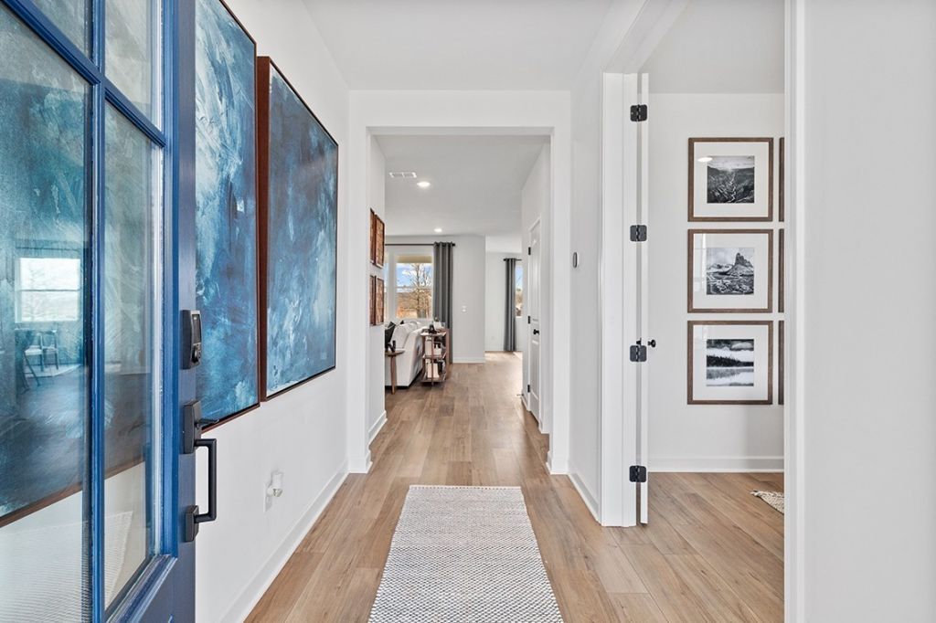 Step into the Hibiscus at The Oaks in Mount Juliet, TN, a home where modern style meets thoughtful design. The inviting foyer opens to a flexible space perfect for a home office or study, while the light-filled great room-with an electric fireplace-flows seamlessly to the dining area and kitchen featuring white cabinets and a walk-in pantry. From here, step onto the extended covered patio, ideal for morning coffee or evening gatherings. A guest room with an en-suite bath and a convenient powder room ensure privacy and comfort for visitors. Upstairs, a versatile loft with extra storage offers a space for play, study, or relaxing. Two oversized secondary bedrooms, one with an en-suite bath. The luxurious owner's suite is a serene retreat, complete with sunlit windows, a spa shower, and a generous walk-in closet. Thoughtful details like a 8' front door, spacious laundry room, built-in valet/drop zone off the 3-bay garage add both convenience and charm. Large homesite around cul de sac.