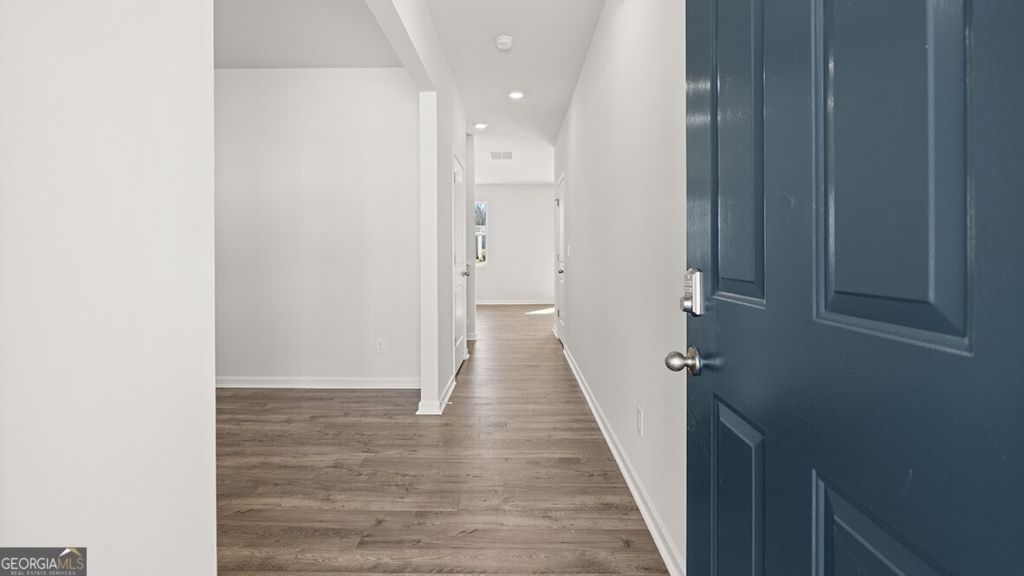 Welcome to the desirable Oaks at Cedar Grove community in Fairburn, GA that is home to 8189 Elkhorn Drive. This Belhaven floorplan is well designed with 4 bedrooms and 2.5 bathrooms in the 1,991 square feet on a basement. From the quaint front porch, the front foyer opens directly to a flex room that can be used as an office space or dining room to gather with family and friends. As you make your way through the front hallway, you will pass a powder room directly across from the staircase. Relax and unwind in the large, open concept great room. The great room flows easily into the beautiful kitchen that boasts granite countertops, stainless-steel appliances, and finely crafted cabinets. Up the stairs you'll run directly into the laundry room. To the right is the spacious primary suite bedroom. Homeowners can enjoy the luxury bathroom with dual vanity and a large walk-in closet. 3 additional bedrooms and a dual vanity bathroom make up the rest of the second floor. Reach out to us at Oaks at Cedar Grove today to get your tour of 8189 Elkhorn Drive!
