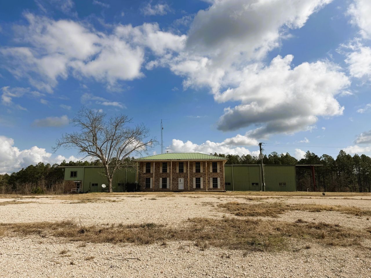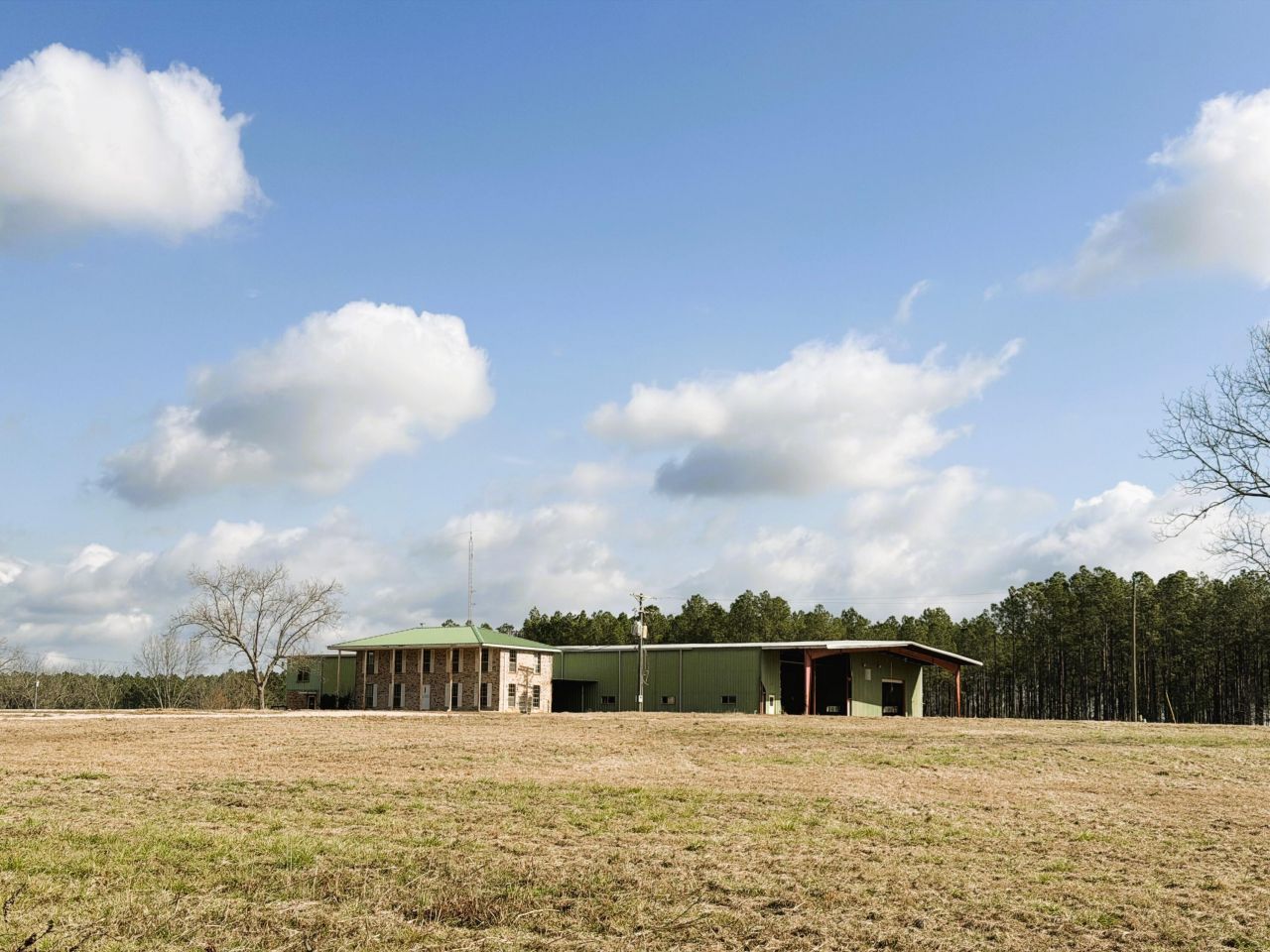 Excellent Commercial Property Opportunity. This former Bass Pecan Company location is ideal for a mechanical shop, indoor sports building, or light industrial work. The warehouse has over 18,000 square feet with 3 phase power and dock height ceilings with 3 Rollup doors. The office with heart pine walls needs a little revamping, but has 2 kitchens , 2 baths and several rooms. Plenty of parking is available on over 8 acres!