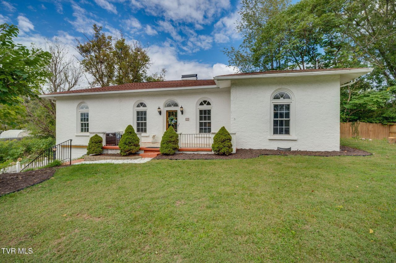 Don't miss the opportuinity to own this Spanish style SRF home. You can say it's a piece of Johnson City history having been built by the construction foreman who built the VA Medical Hospital. Using the same materials as the VA you can see the quality that went into this dwelling. As you enter the front door, you can't help but notice the beautiful hardwood floor throughout. The living room has a fireplace and 10 foot ceilings with plenty of natural light. The arched doorways just add character to this home. There are two bedrooms and one full and one half bathroom. There is a large formal dining area. The kitchen has been updated and has beautiful wood plank ceilings. The white stucco, white picket fence and the oversized front yard just add to the beauty of this property. This dwelling includes an unfinished basement level with a one car built-in garage. The Polk Ave. location is near local amenities and to most of all that Johnson City has to offer. Square foot of this dwelling has been determined through the ANSI standard. Seller is related to list agent.