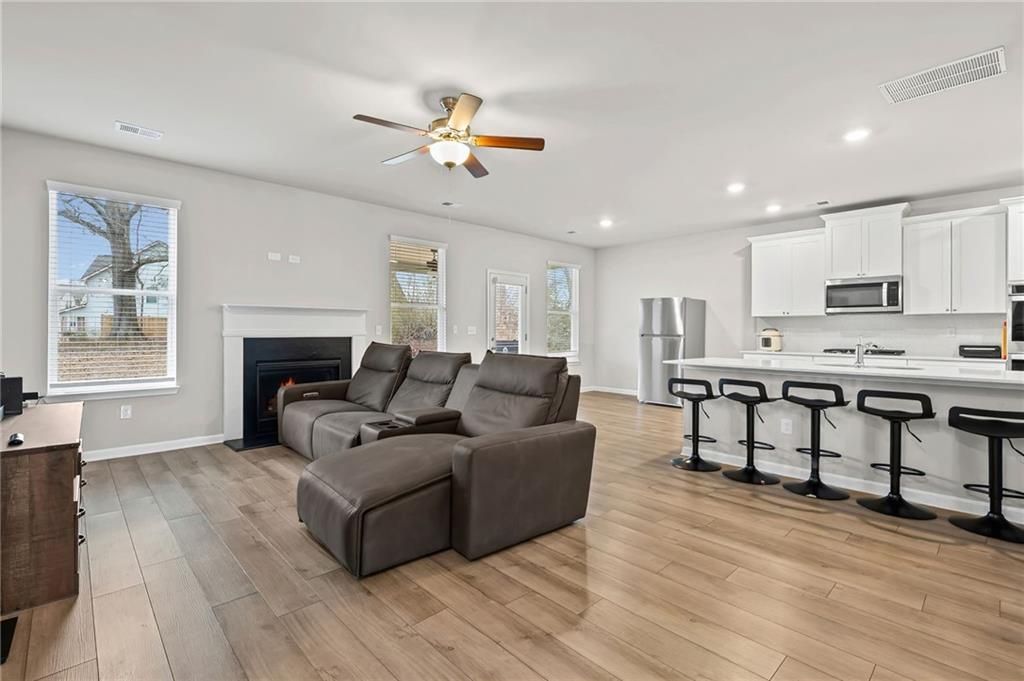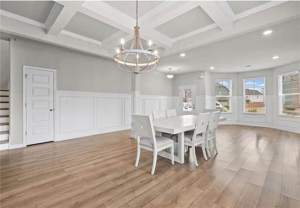 SELLER IS OFFERING $10,000 TOWARDS PURCHASER'S CLOSING COSTS! OVER 3,000 Sq FT!!!!This home qualifies for a 100% conventional loan and a 100% government loan! This rare home has great curb appeal and offers tons of space and natural light throughout. When you walk in, you will be greeted with the long formal dining area large enough for 12+ people, adorned with high-end coffered ceilings and a classy chandelier! Luxury Vinyl Plank flooring on the main with a formal living space, family room, full bathroom, and a bedroom on the main! The large open kitchen features quartz counters, a tiled backsplash, white cabinets with plenty of room for all your dishes and pans, a double sink, a disposal, and a pantry. Whirlpool stainless steel appliances include a double oven, refrigerator, built-in microwave, and a 4-burner gas range! Next to the eat-in kitchen is a door that leads to your private covered patio, complete with underdecking and perfect for entertaining and grilling! This home is move-in ready and features 3-in blinds throughout, neutral colors, ceiling fans, recessed lights, and bay windows! Oversized master bedroom offers a tray ceiling in the sitting room and his and her walk-in closets. Master bath features a garden tub, a separate tile surround shower, tiled floors, and a double vanity with quartz tops. The laundry room is large and has a convenient wire rack for clothes and laundry items - BONUS - washer and dryer remain. It is a great community and a great location! Sought after Everett III floorplan! Close to dining, shopping, hospital, Costco, Publix - everything at your fingertips! Hop on I75 and I675 with ease! Swim Community with a dog park, walking trails, playground, and a cabana!