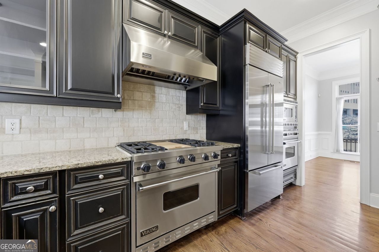 An exceptional jewel in Inman Park Village, this 3-bedroom, 41/2-bath all-brick townhome offers elevated urban living in one of Atlanta's most desirable neighborhoods, just steps from the Eastside Beltline Trail, Krog Street Market, acclaimed restaurants, cozy cafes, and boutique shops. Designed for both everyday luxury and convenience, the home spans four thoughtfully curated levels and is highlighted by a rare fourth-floor entertainment suite and rooftop deck-an offering that stands out even among Inman Park's finest residences. With effortless access to downtown Atlanta and Hartsfield-Jackson International Airport, this is city living at its best. The entry level features a private guest suite with a full bath and direct access to the two-car garage, making it ideal for visitors, a home office, or a home gym. The main living level-accessed through elegant double doors off Inman Village Parkway-is filled with natural light and rich hardwood floors. A welcoming dining space flows into the chef's kitchen, featuring premium stainless-steel appliances and thoughtful design details that add warmth and character. The adjacent family room is anchored by a gas fireplace with custom built-ins and hidden media wiring, blending function and style. French doors open to a partially covered deck with an integrated gas line, creating a seamless indoor-outdoor connection for grilling and evening gatherings. A stylish powder room completes this level. Upstairs, the primary suite offers a serene retreat with custom closets, charming Juliet balconies, and a spa-inspired bath featuring a soaking tub, walk-in shower, and a distinctive custom vanity. A second ensuite bedroom with a walk-in closet and a full laundry area complete this floor. The fourth level is where the home truly shines. Accented by exposed brick and filled with natural light, this versatile space can serve as a media lounge, home office, music room, or optional fourth bedroom. A wet bar with beverage and wine refrigerators and a full bath enhance its functionality and appeal, while a skylight floods the space with natural light. The room opens directly onto the rooftop deck, where sweeping treetop views of historic Inman Park create a stunning backdrop for relaxing or hosting evening gatherings. Additional highlights include built-in speakers, 10-foot ceilings on the main level, and an epoxy-coated garage floor with custom cabinetry. Perfectly positioned in one of Atlanta's most iconic historic neighborhoods, this home offers a rare blend of location, lifestyle, and luxury-where vibrant city energy meets refined design, with the best of Inman Park living right outside your door.