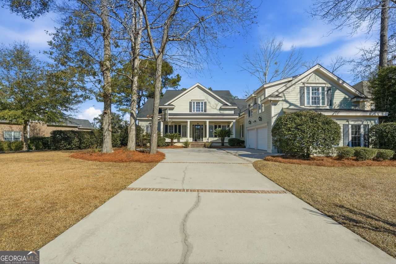 Welcome to 9 Wood Duck Drive in Savannahs highly sought-after Southbridge community, a thoughtfully designed 5,300-square-foot home offering a prime location with convenient access to all that Savannah has to offer. The open living spaces are filled with natural light, highlighting soaring ceilings, hardwood floors, and a layout that flows comfortably from room to room, making both everyday living and entertaining feel effortless. The kitchen is both functional and inviting, featuring high-end appliances, custom cabinetry, a large central island, and a beverage fridge that adds ease for hosting and daily living. The primary suite, located on the main level, provides a peaceful retreat with generous space and a spa-inspired bathroom designed for relaxation, while the additional bedrooms and bathrooms throughout the home are equally well-appointed with attention to detail. A spacious room with a full bathroom located above the garage offers flexibility and privacy, well-suited for guests, extended stays, or a private workspace, and the home also includes a fifth room that could easily be used as a bedroom, office, or bonus space. Outdoors, the patio is surrounded by lush greenery and offers a quiet extension of the home, creating a calm and welcoming atmosphere throughout.